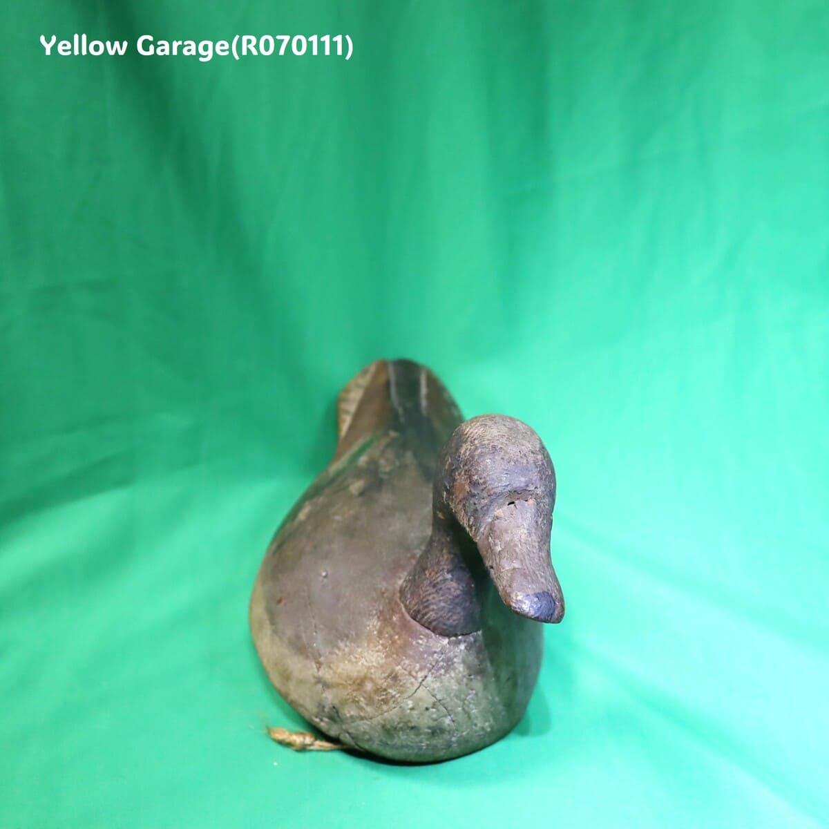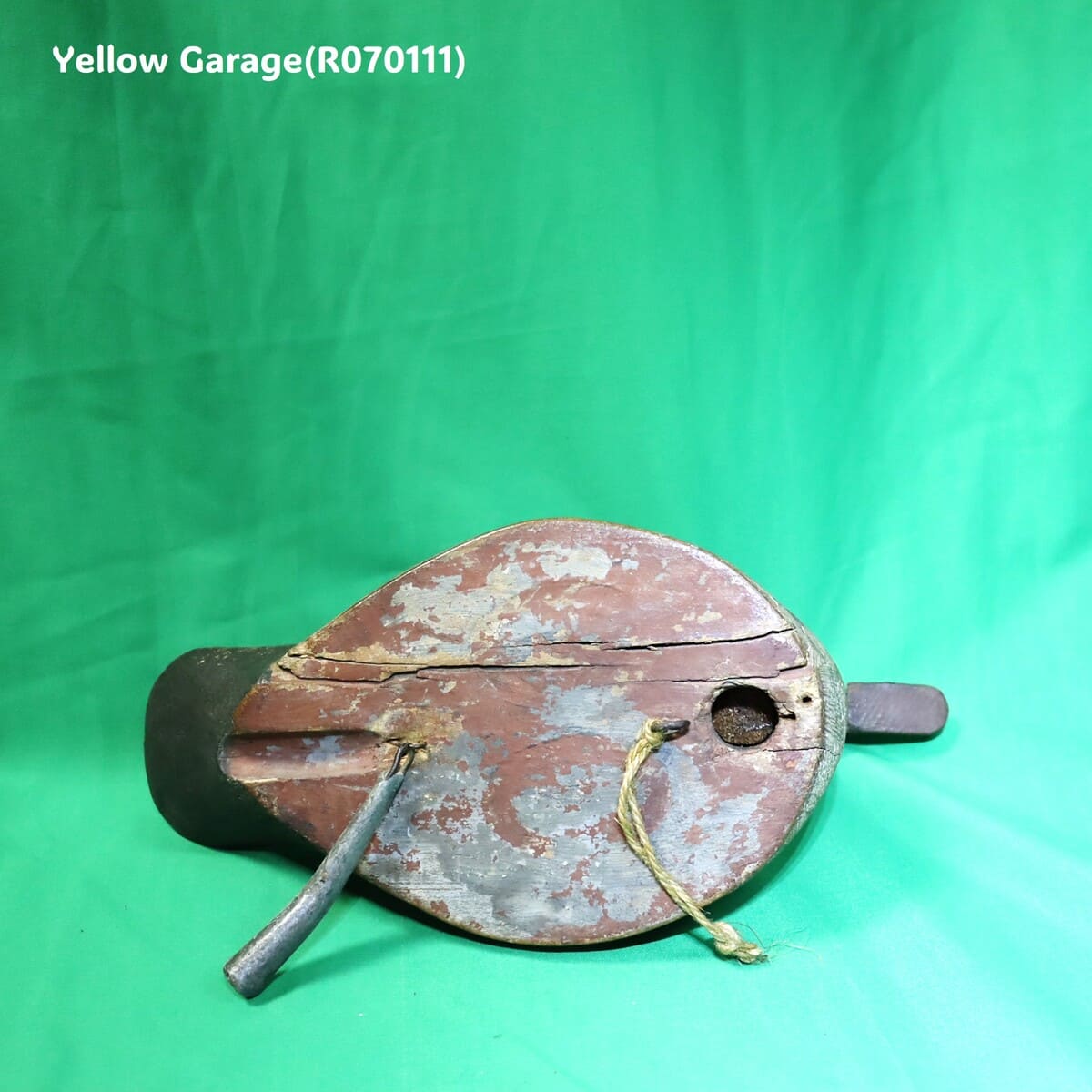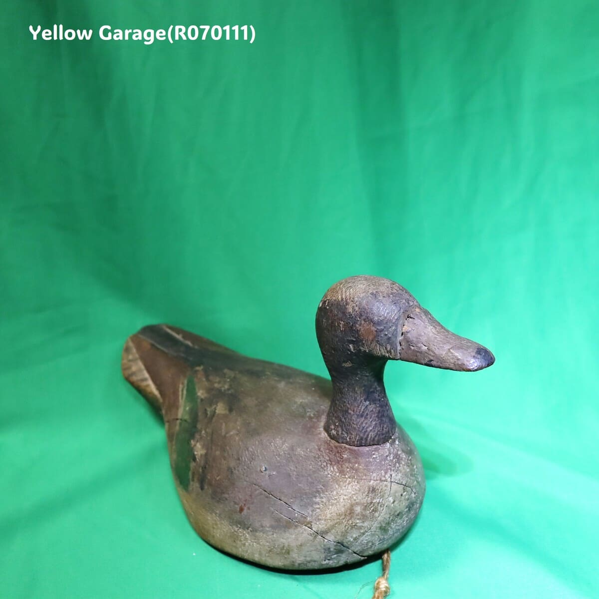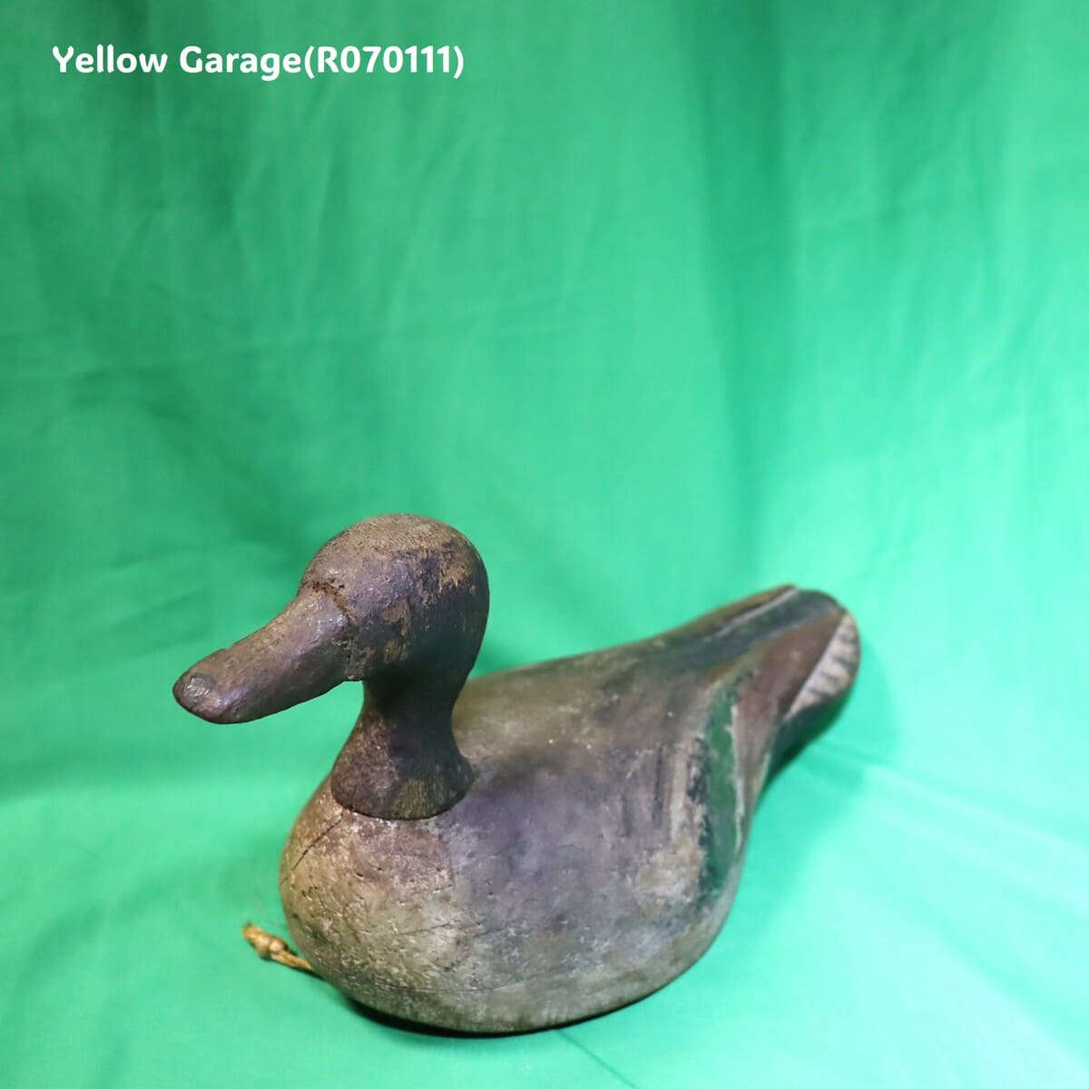 20世紀初期〜中期頃に作られたと推定される木製のカモデコイ(Duck Decoy)です。古い塗装が自然に剥がれ、木地の質感が美しく現れた味わい深い一点もの。特徴的なのは、くちばし部分が抜ける構造。これは、当時のデコイに見られるメンテナンス性を重視した設計で、破損や交換、内部の清掃を容易にするための実用的な仕組みと考えられます。ボディ下部には鉛製のおもりが装着されており、水上での安定性を確保。前方のロープと金具は、実際に水面へ浮かべる際の係留用として機能していました。現存するアンティークデコイの中でも、このようにオリジナルの構造を保った個体は非常に希少です。自然な経年変化とともに、古き良きアメリカのアウトドアカルチャーを感じられる逸品です。(R070111)
