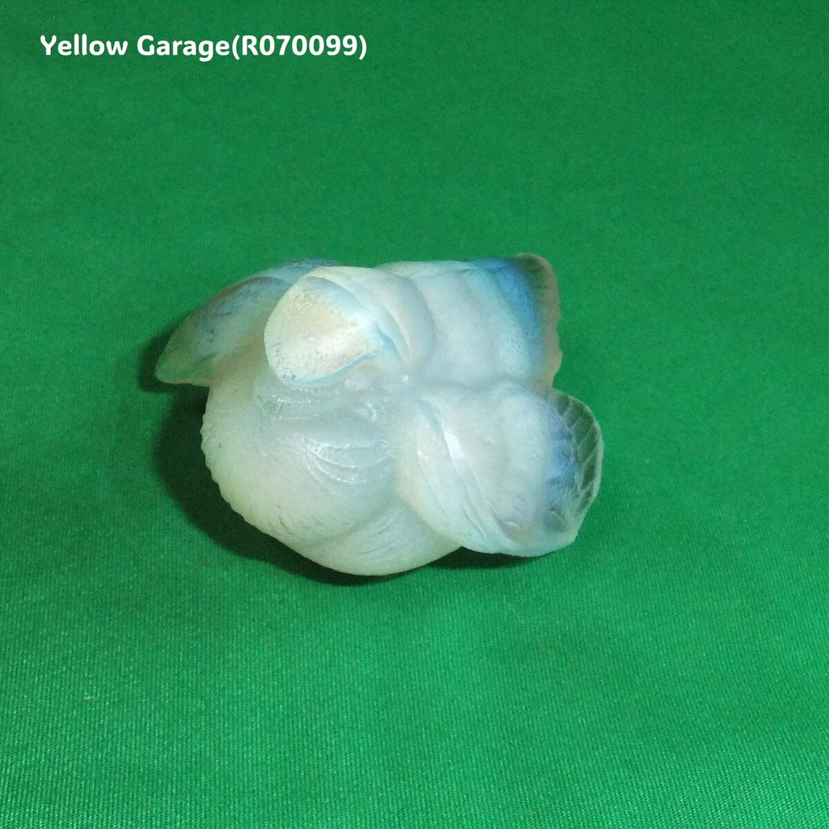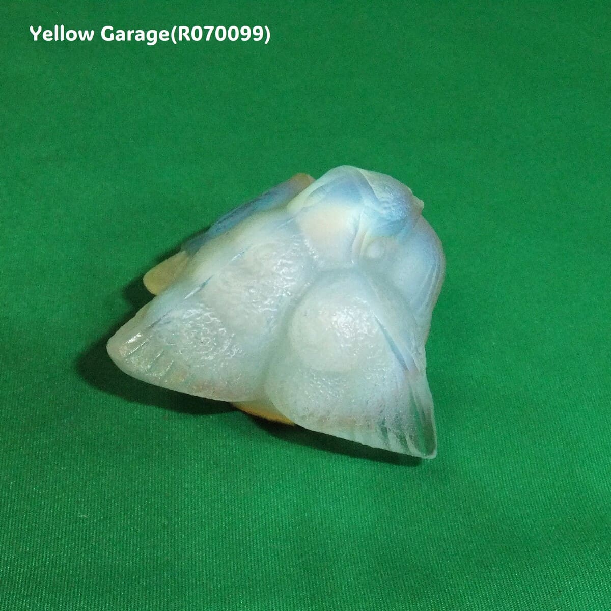 アールデコ黄金期、フランスの名工フランシス・サビノによって制作された、美しいガラス製の鳥のオブジェです。オパルセント加工が施された柔らかな乳白色と、わずかに青く光るグラデーションが幻想的な印象を与えます。羽の流麗な曲線や目元の繊細な表情など、細部まで丁寧に彫り込まれた造形美はまさに芸術作品。底部には「SABINO FRANCE」のエンボスがあり、当時のオリジナルであることを証明しています。また「MADE IN FRANCE」のラベルも残る希少な一品です。(R070099)
