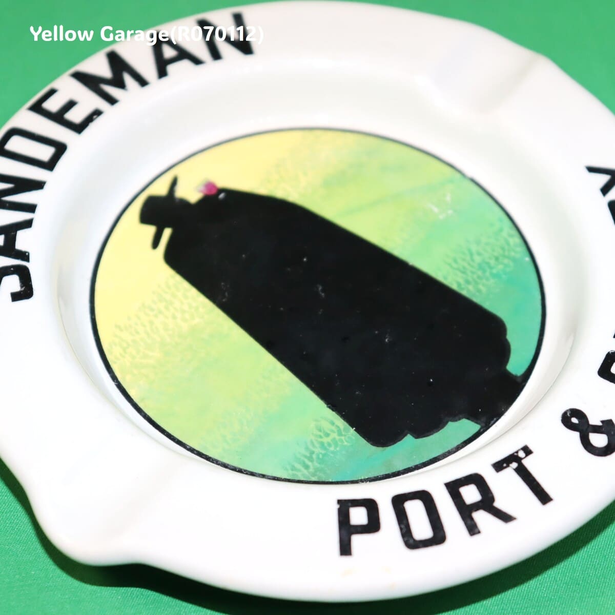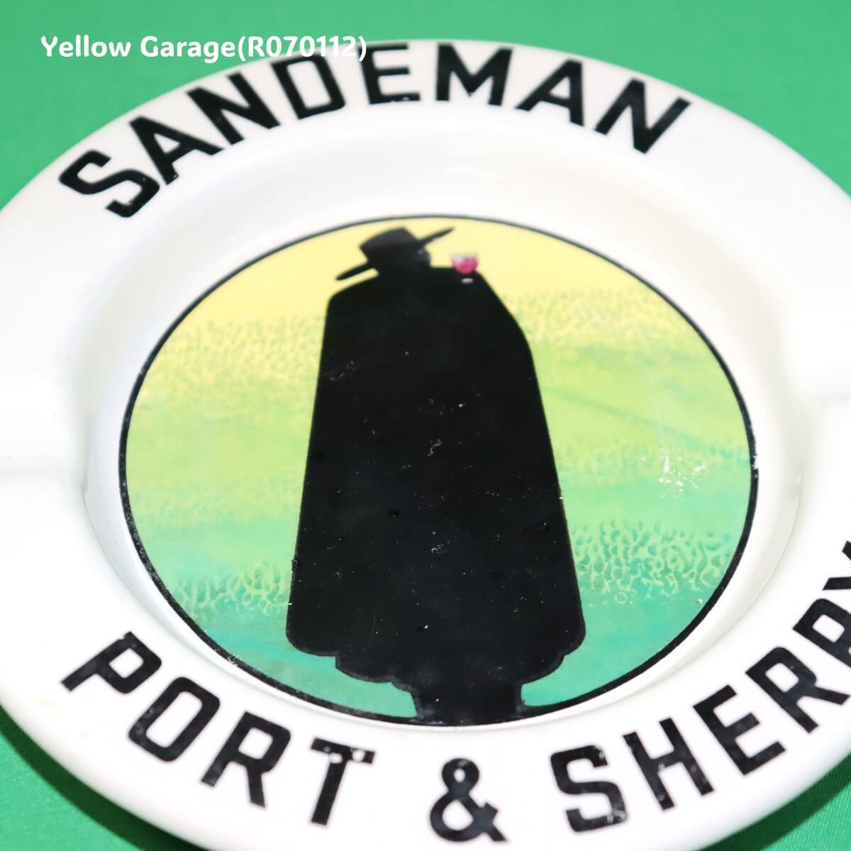 ポルトガルの老舗ワインブランド「SANDEMAN(サンデマン)」のプロモーション用として制作された、ヴィンテージの陶器製灰皿です。中心には、同ブランドの象徴的なシルエット・キャラクターが描かれ、赤いワイン(ポートまたはシェリー)を手にしています。背面の刻印から、フランス・リモージュ(Limoges)地方の名窯「Sarreguemines(サルグミンヌ)」による製作と判明。1930年代〜1950年代のフレンチバーブーム時代に使用されていたものと推定されます。(R070112)