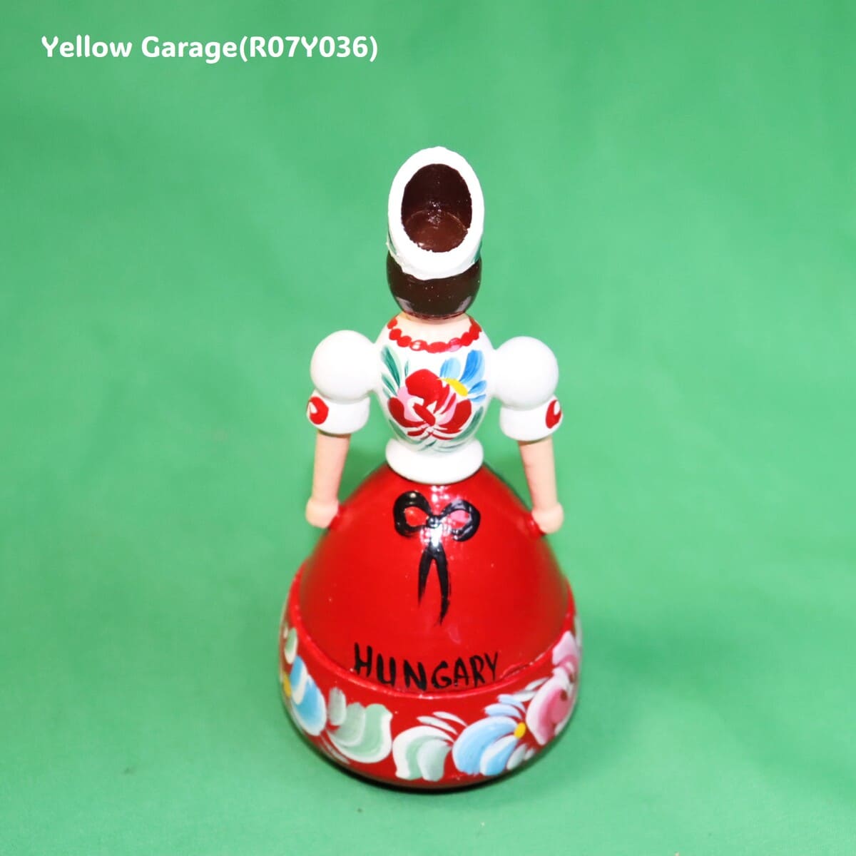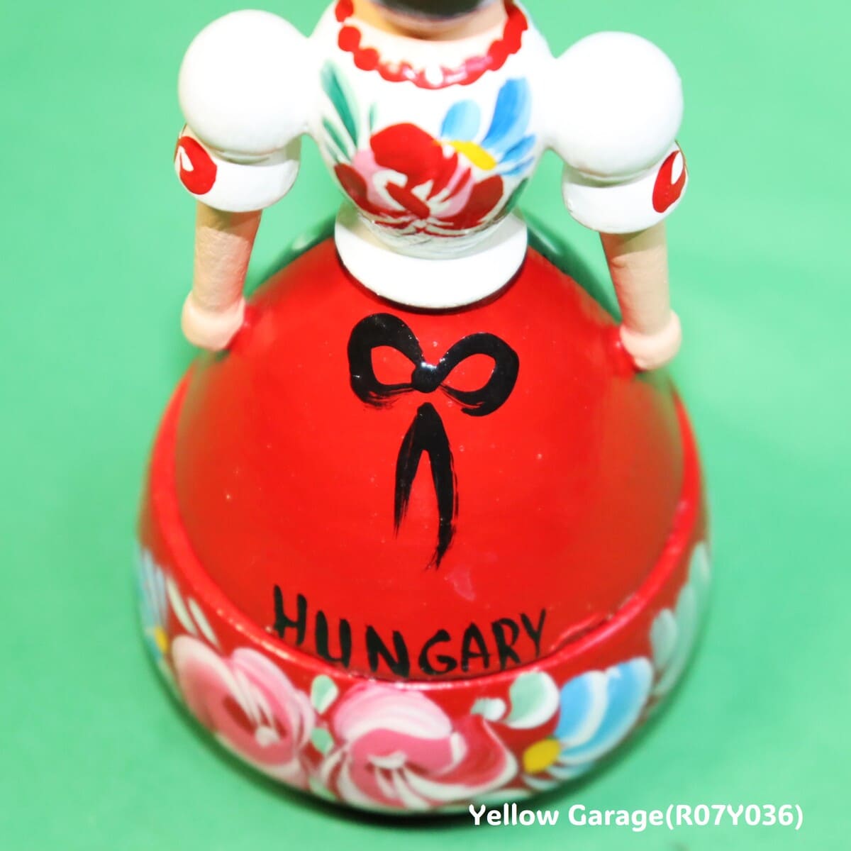 ハンガリーでは民俗衣装(フォークコスチューム)を模した人形が、観光用土産品や工芸小物として作られており、「木製+手描き/ハンドペイント」がその特徴のひとつです。頭部にポンポンや帽子を被っているようなデザインもハンガリーの民族衣装のアクセントとして見られ、地域や祝祭衣装によってこうした飾りが入ることがあります。「木製人形+内部が小物入れ」タイプ(トリンケットボックス型)も、ハンガリー工芸品の中で「お土産/雑貨」用途として多くあります。