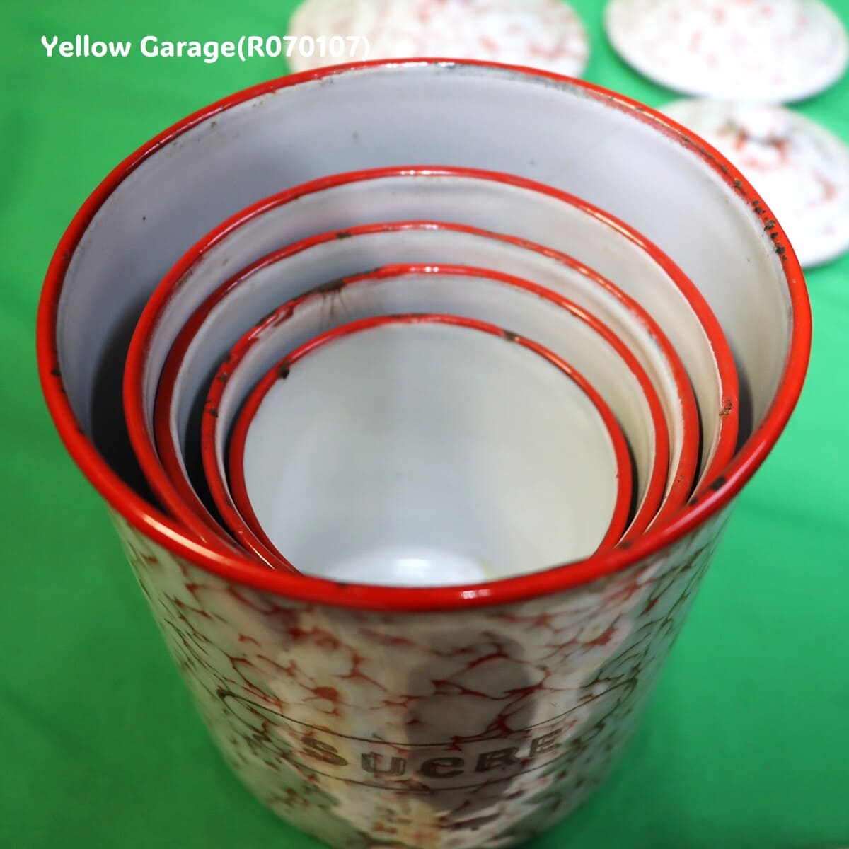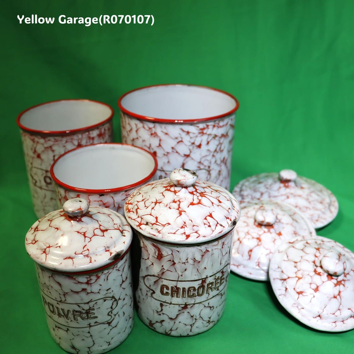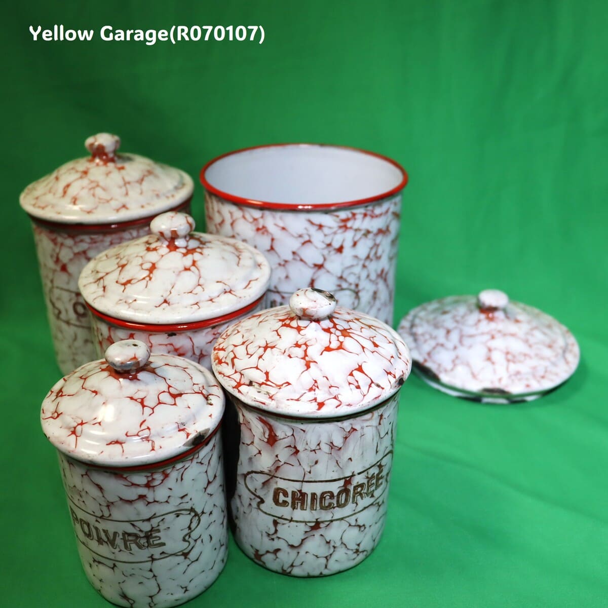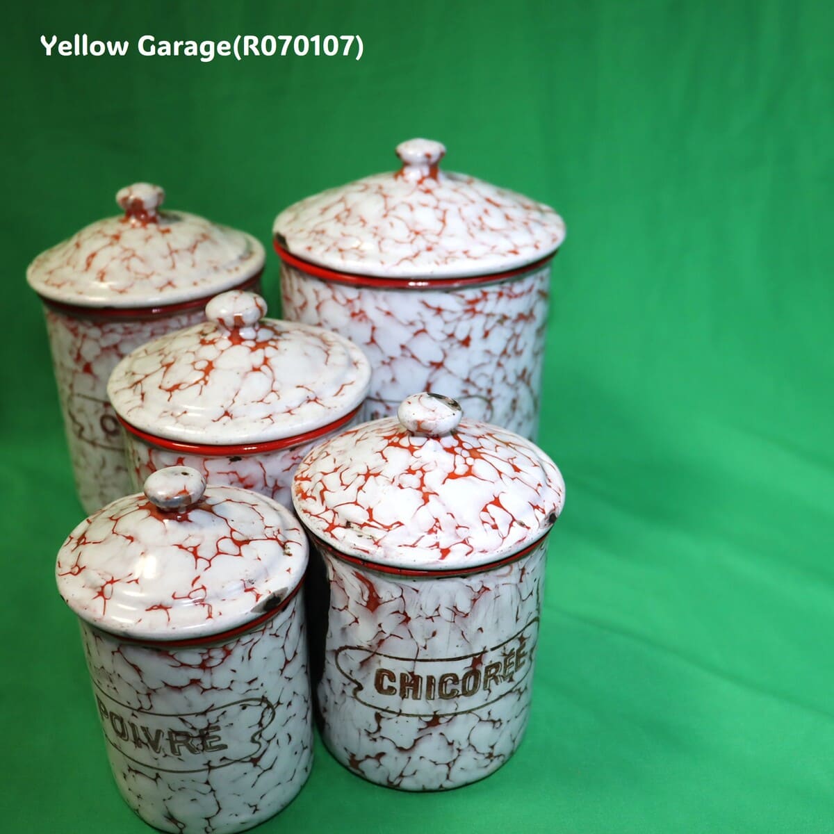 フランス製 ヴィンテージ ホウロウキャニスター5点セット(赤白マーブル)