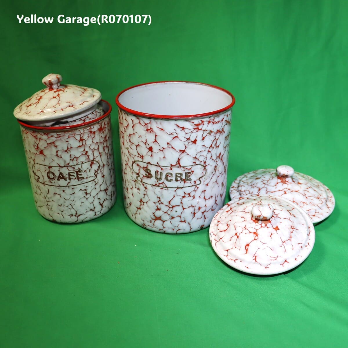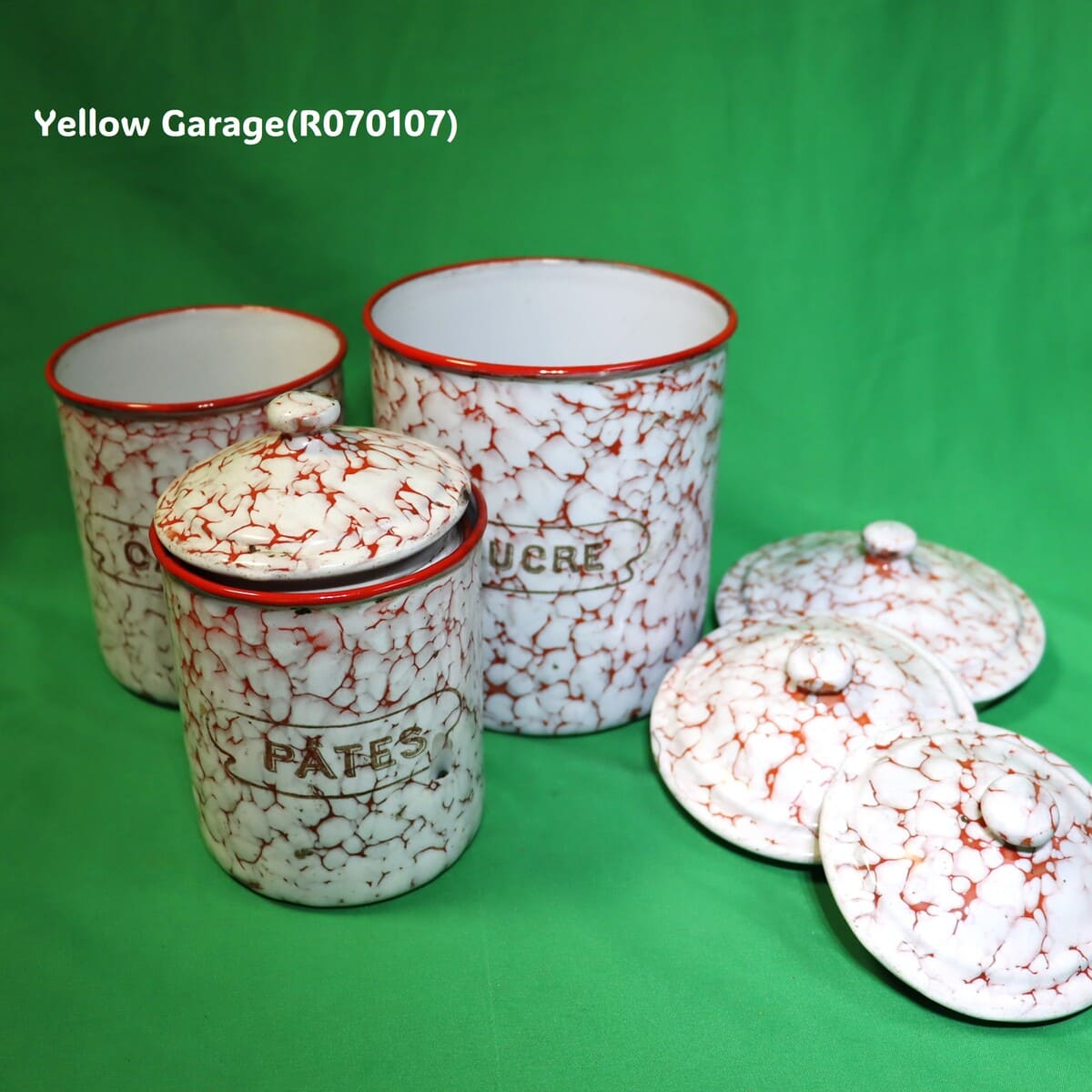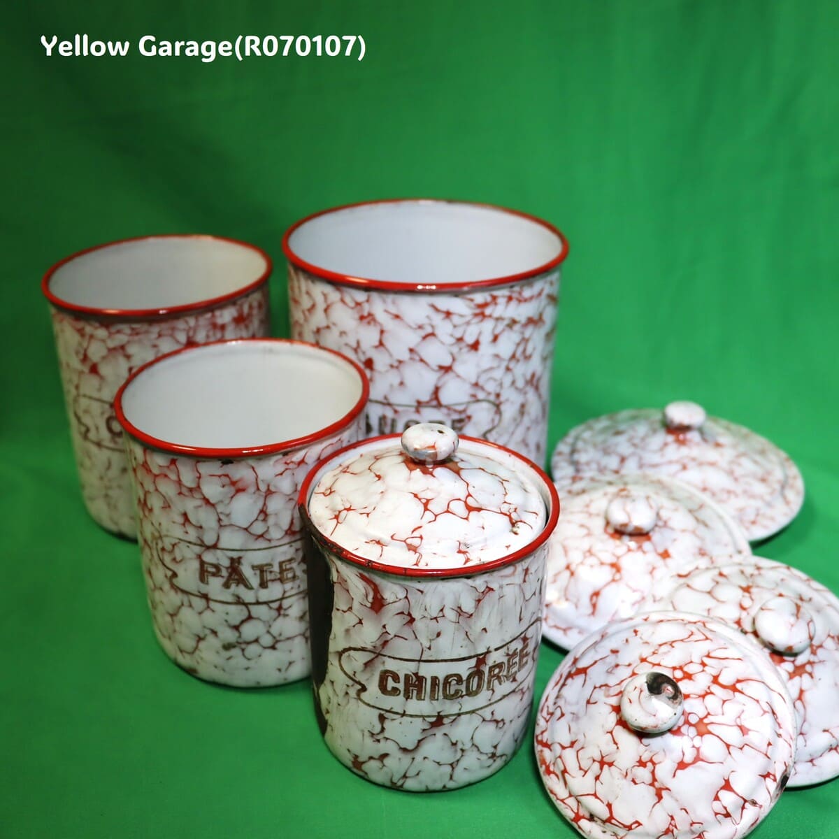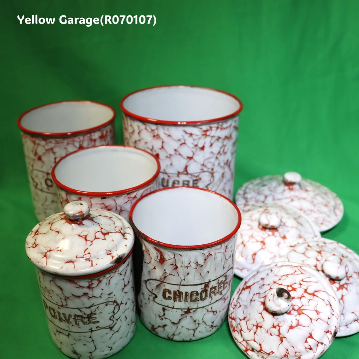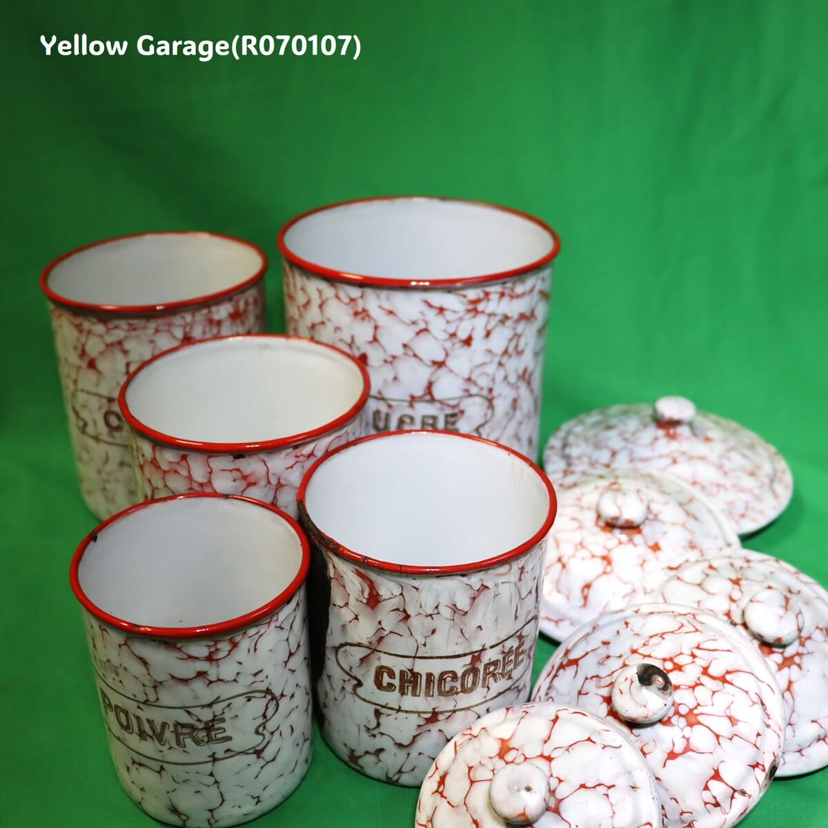 フランス製 ヴィンテージ ホウロウキャニスター5点セット(赤白マーブル)