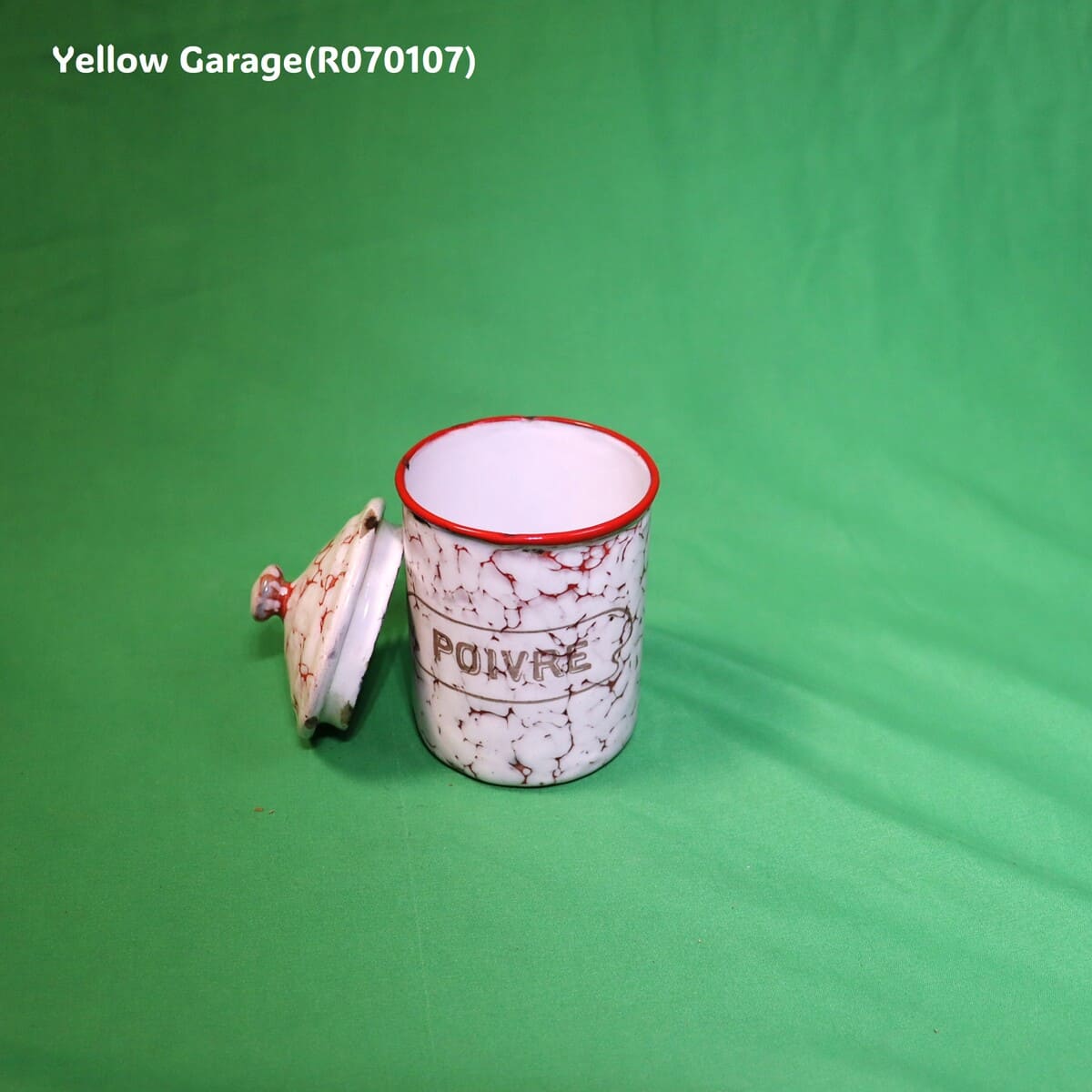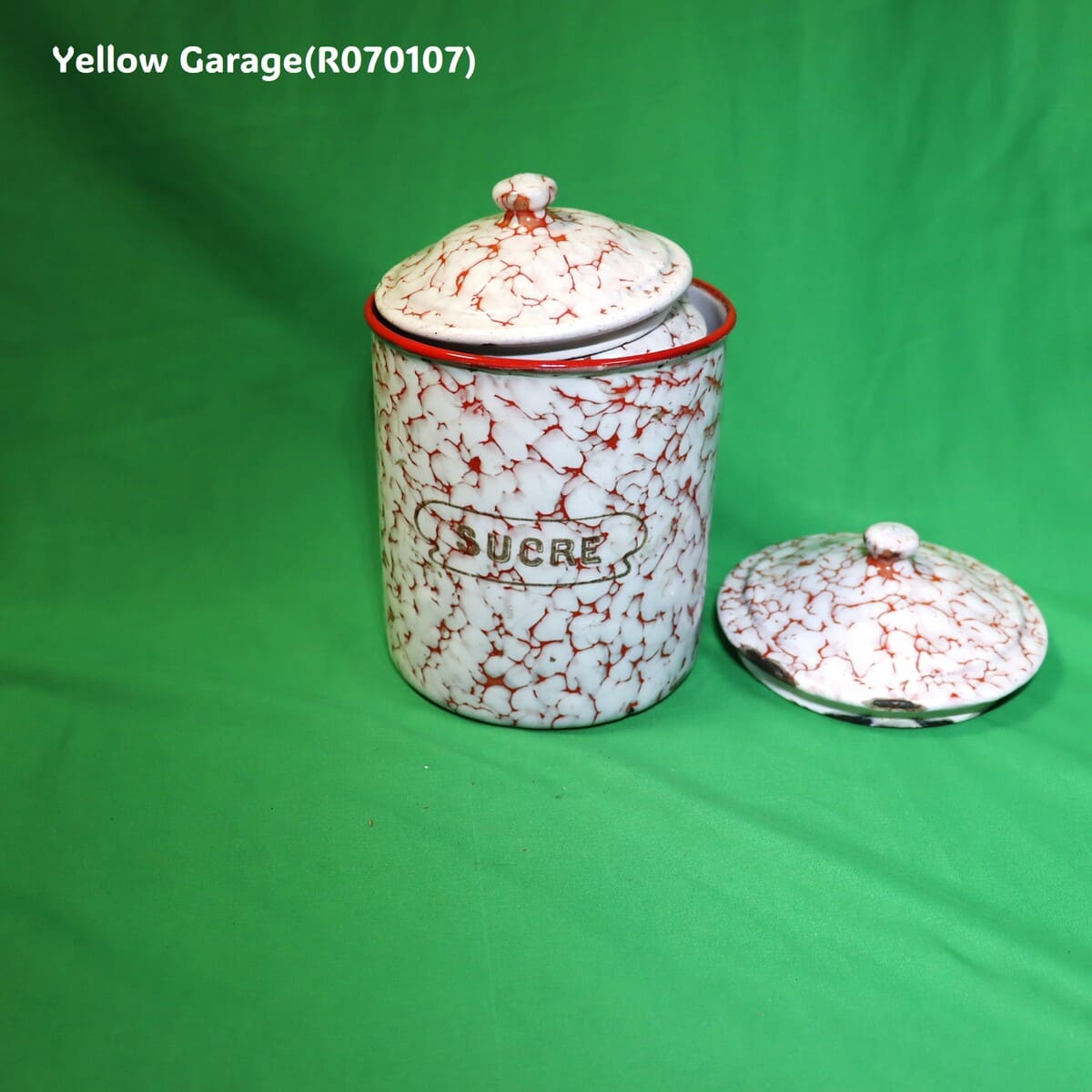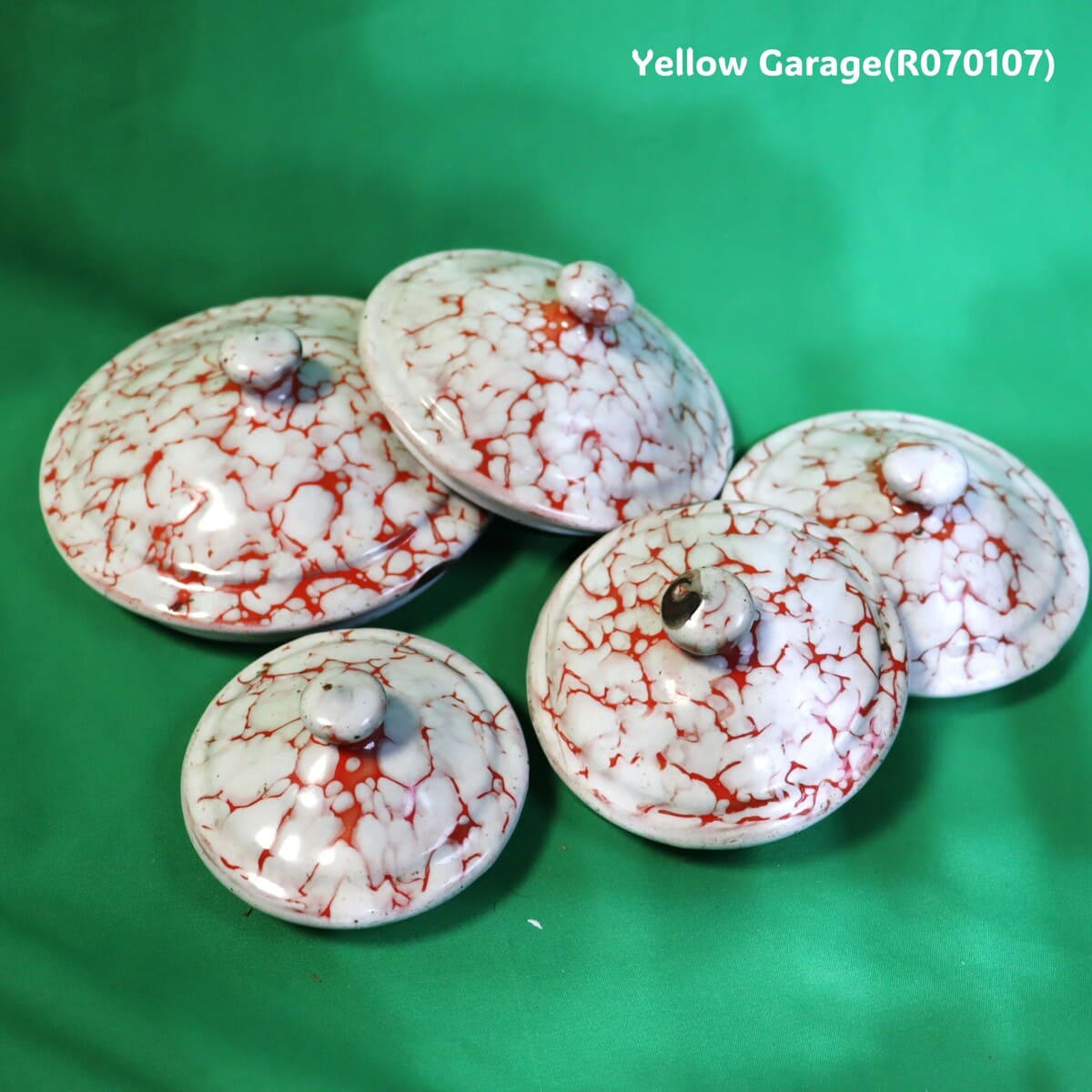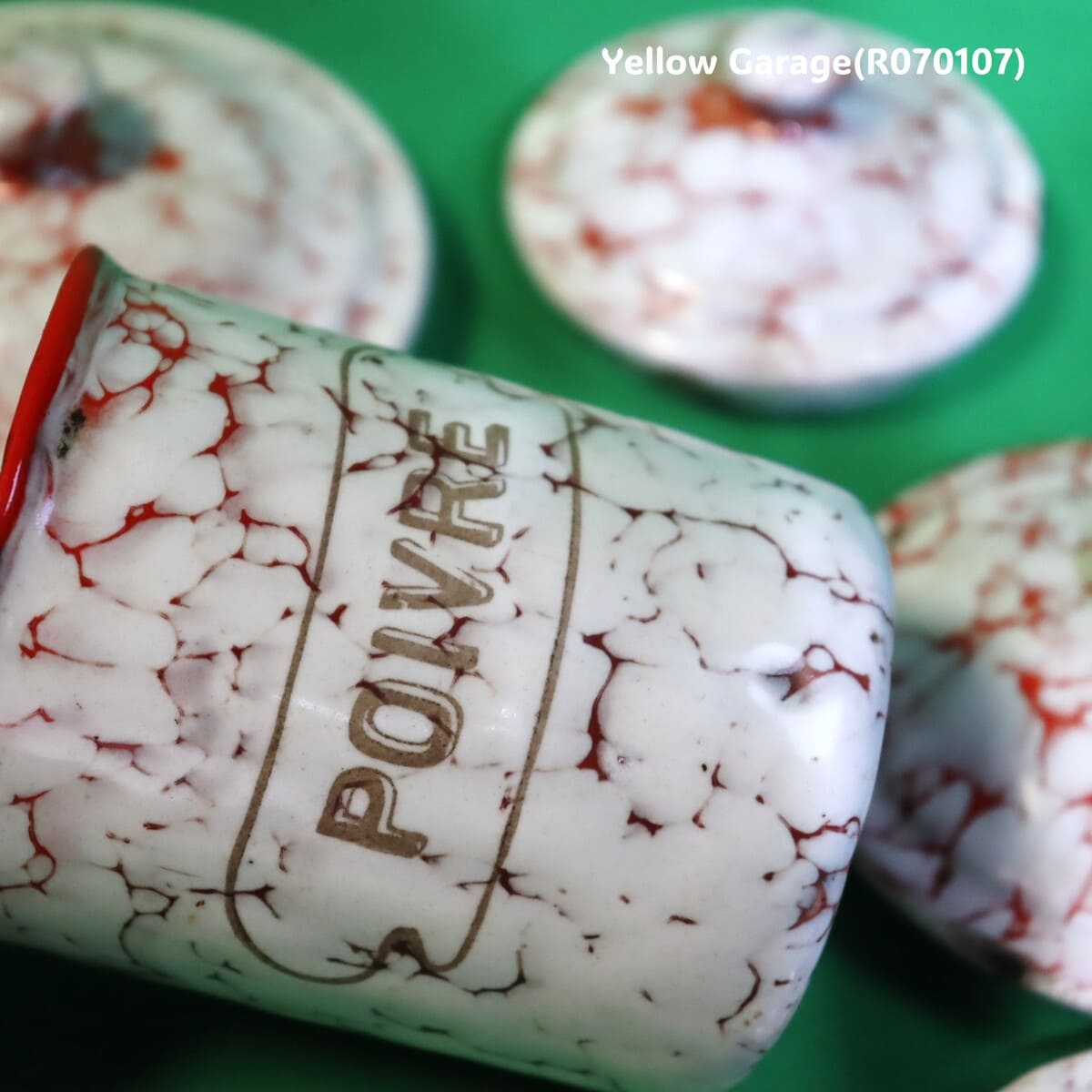 フランス製 ヴィンテージ ホウロウキャニスター5点セット(赤白マーブル)