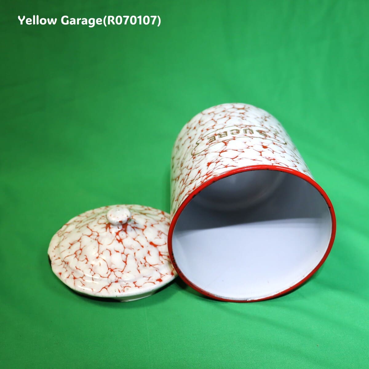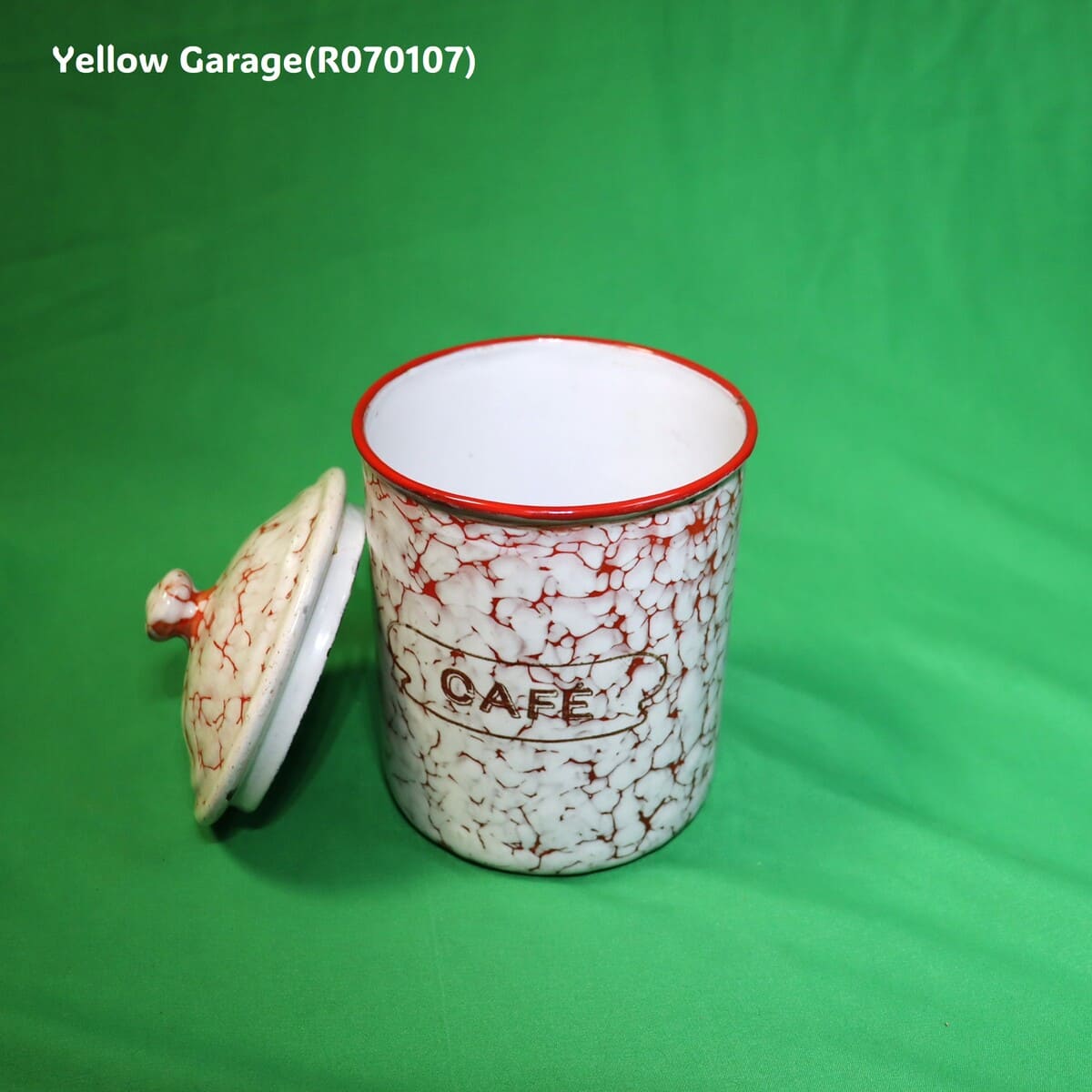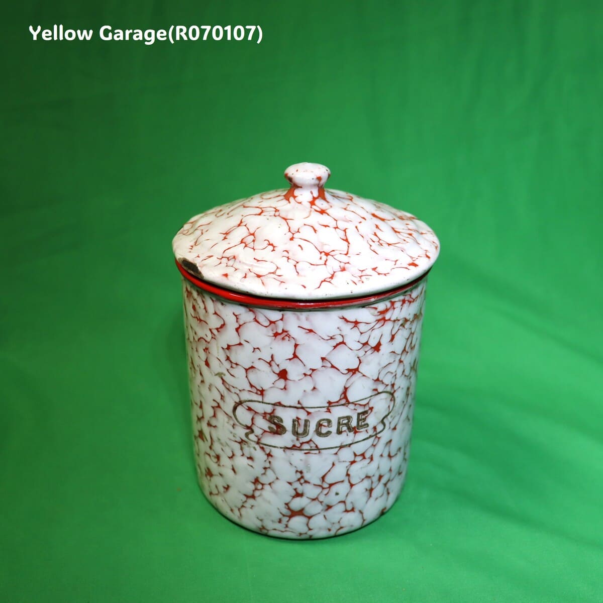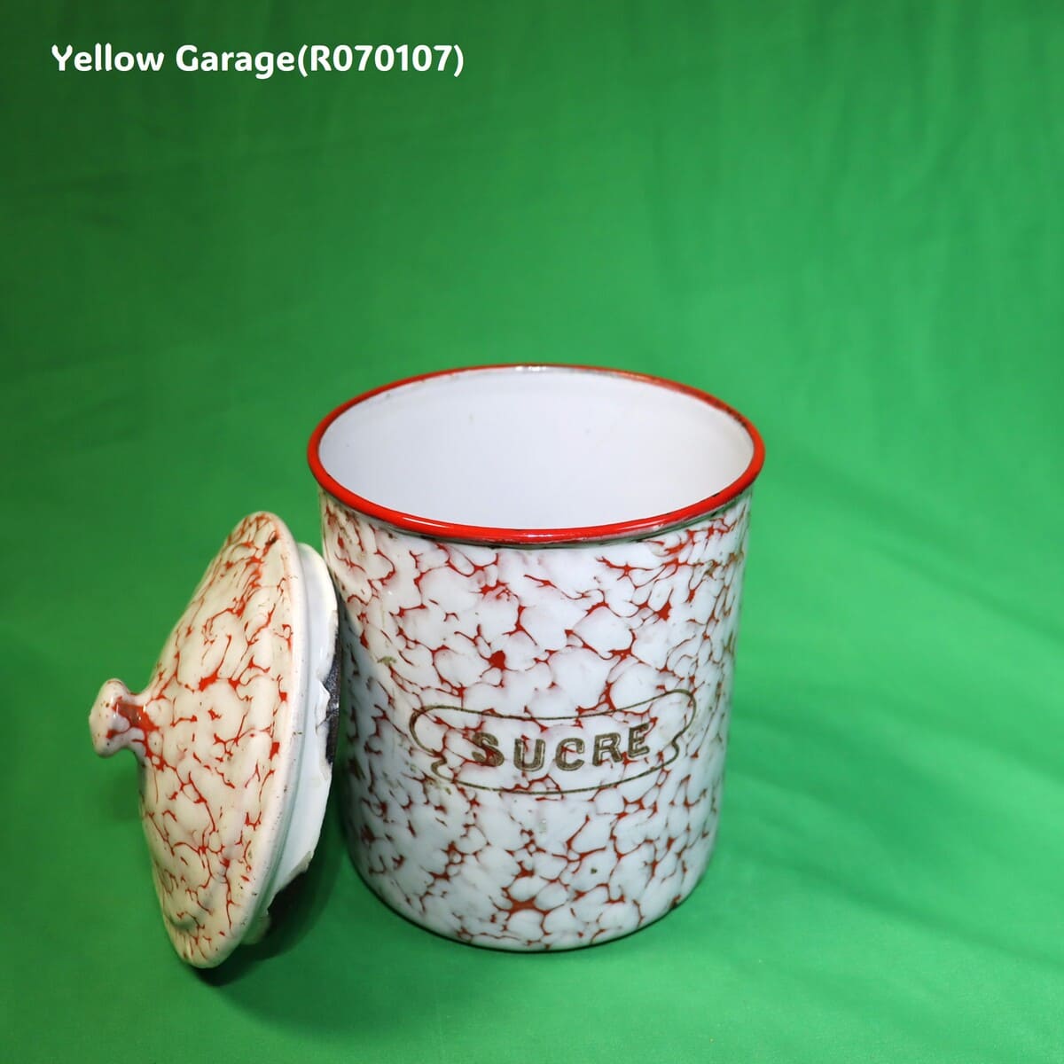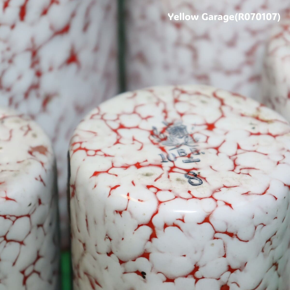 フランス製 ヴィンテージ ホウロウキャニスター5点セット(赤白マーブル)
