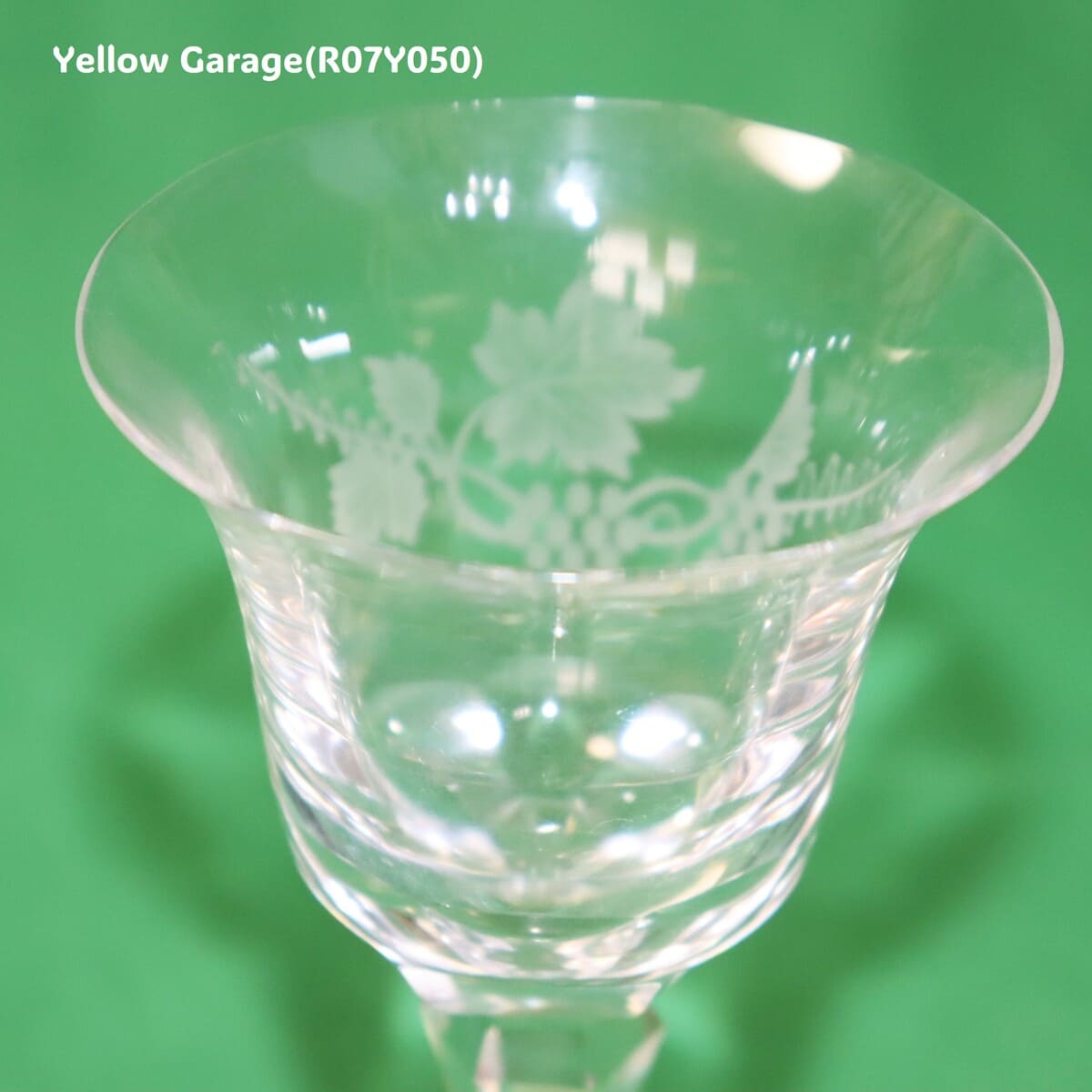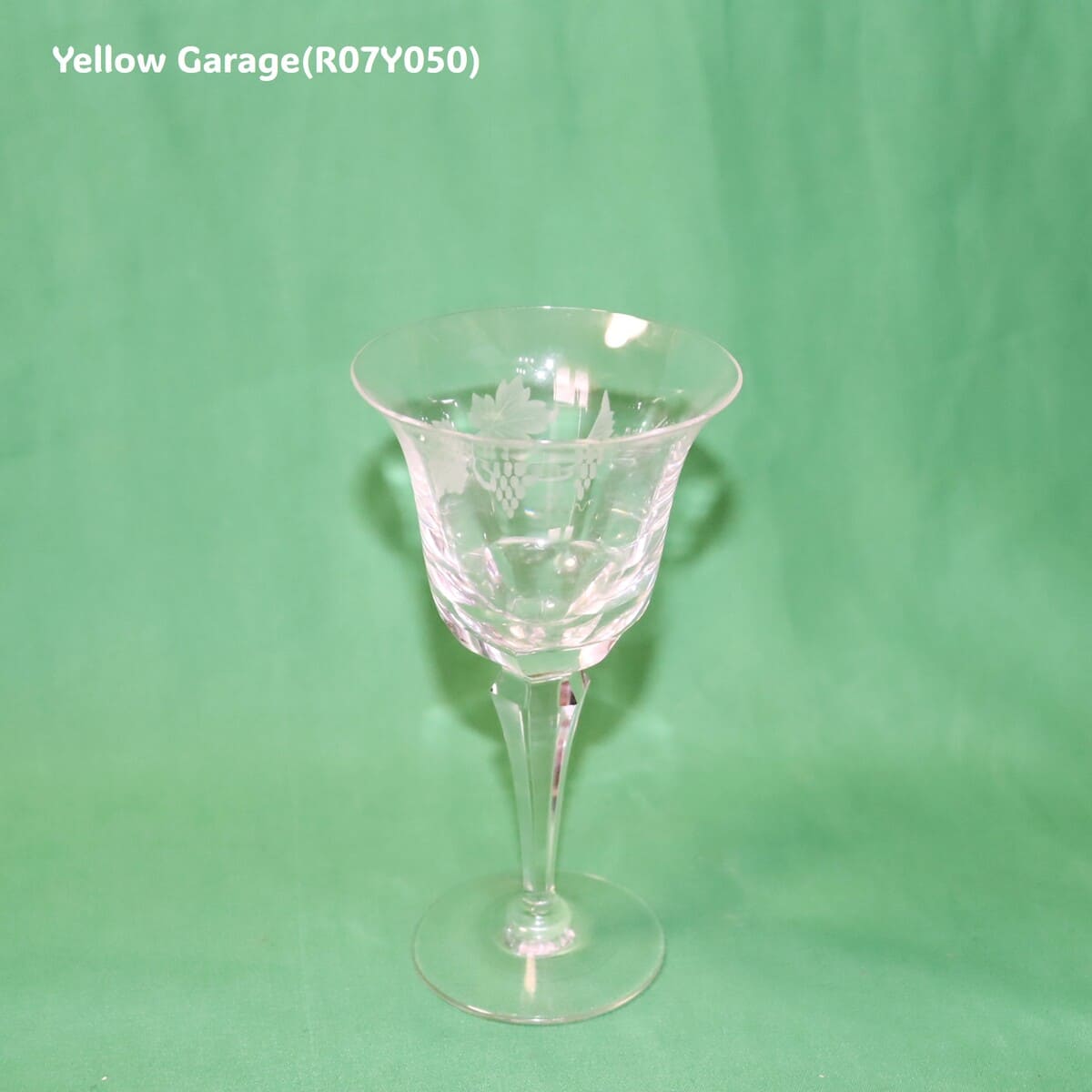 葡萄と蔦のモチーフが美しくエッチング(サンドブラスト)加工されたヴィンテージ風グラスです。全高約14cmの中型サイズで、ワインはもちろん、リキュールや冷製スープ用にもご使用いただけます。明確な銘(刻印・ブランド名)はございませんが、グラスの厚み・装飾の精度から、1960〜1980年代頃の西洋ガラス製と推定されます。上品な佇まいは、和洋問わずどの空間にも馴染み、贈り物や店舗ディスプレイにも最適です。(R07Y050)