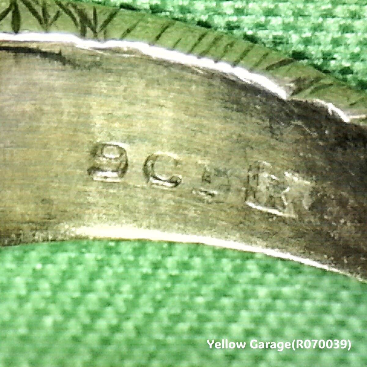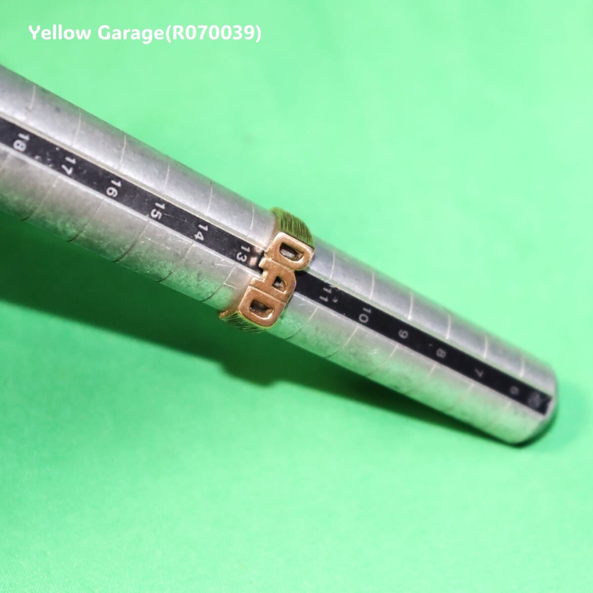 イギリス製のヴィンテージ・メンズリング。「DAD」の文字を立体的に象ったデザインで、全面に細かいテクスチャ(彫り模様)が施された、存在感のある仕上がりです。内側には「9CR」のホールマークが刻まれており、9金(9ct)ゴールドであることが示されています。指輪のサイズは12号(日本サイズ)で、男性の標準的なサイズ感です。リングにはヴィンテージ特有の味わい深い使用感がありますが、全体的にしっかりとした作りで、末永くご使用いただけます。ブラックの丸型ヴィンテージケース付きで、贈り物にも最適です。(R070039)
