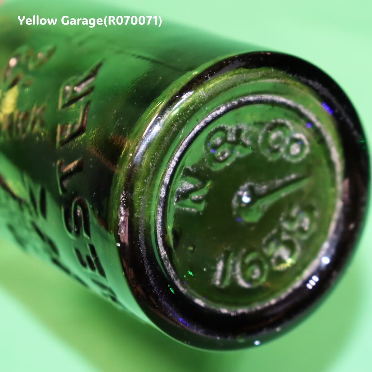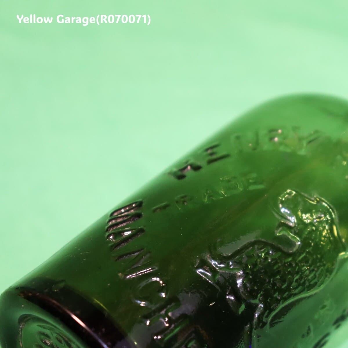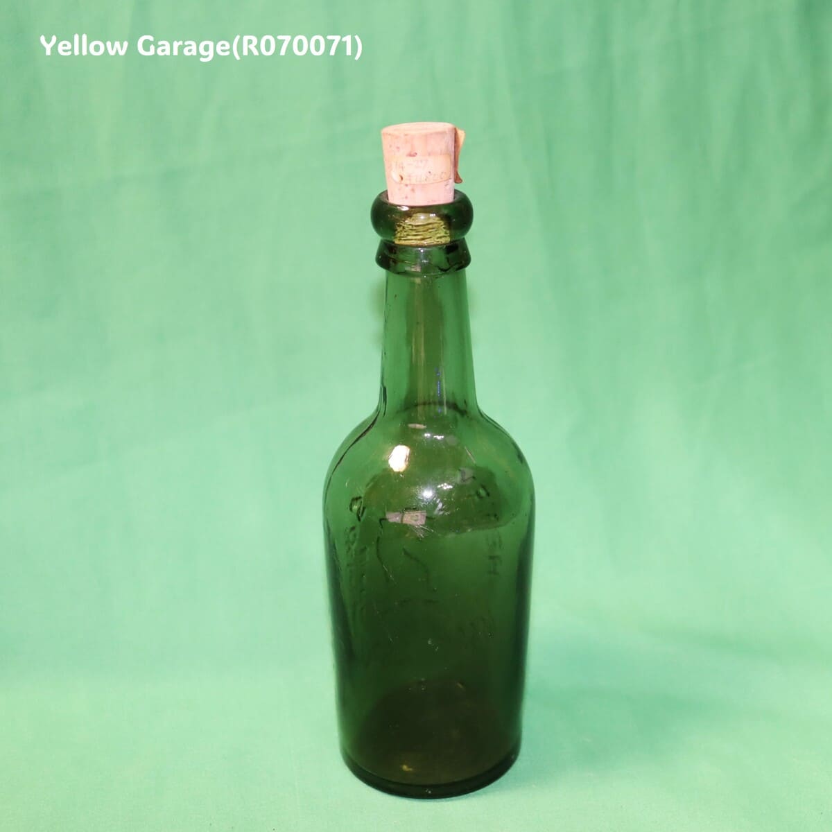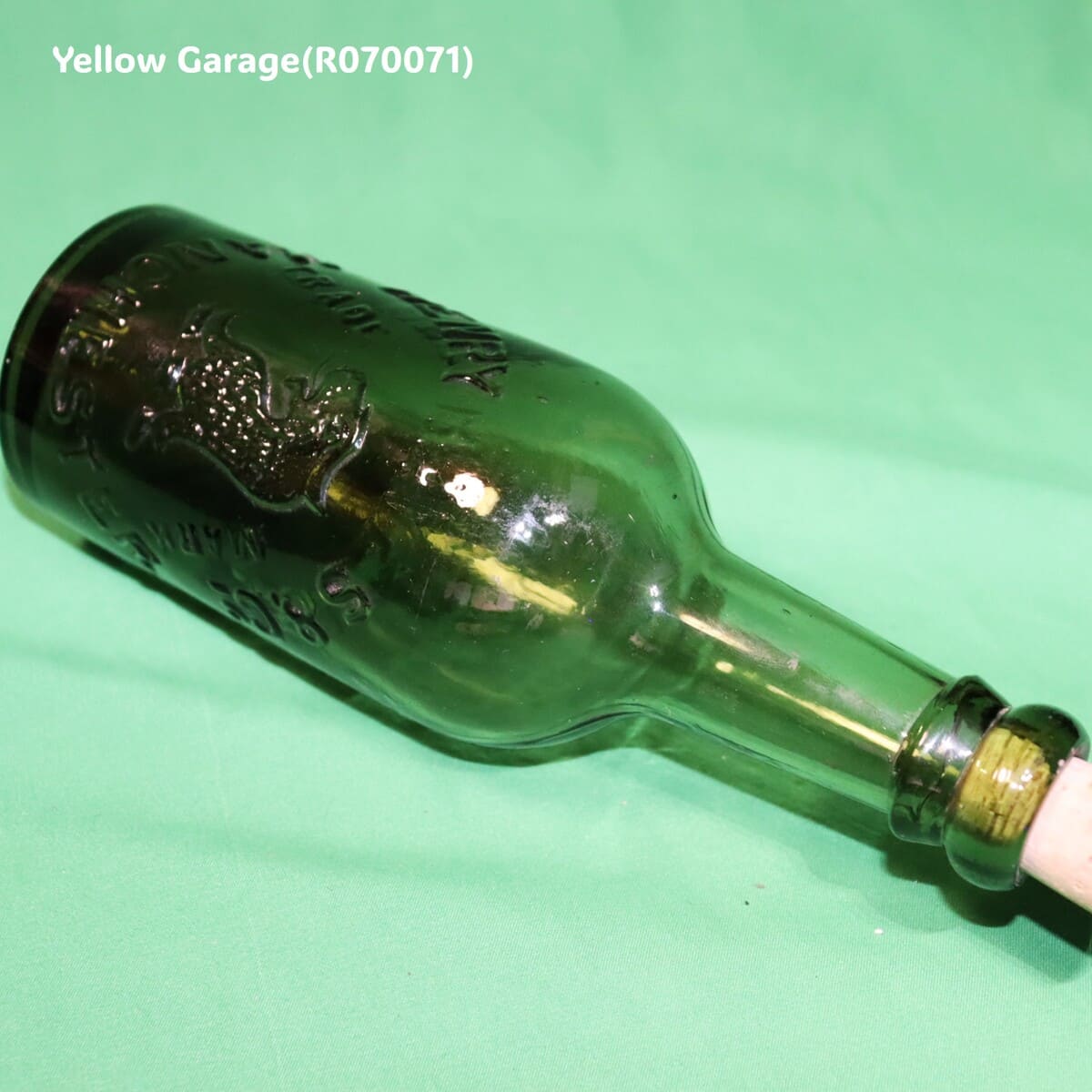 19世紀末の英国アンティークガラスボトルは、現代では大変希少です。深緑の美しい光と、力強い獅子の意匠に、遠い時代の息吹を感じてみてください。19世紀中頃〜後半、瓶ビールの栓には 天然コルク栓(コルクストッパー) が多く使われていました。コルクをワイヤーで固定したり、蝋やピッチ(樹脂)で封をして気密性を高める方法が一般的で、コルク栓は発酵によるガス圧で飛びやすかったため、後に改良型の栓(バレットストッパー、ハッチンソンストッパー、クラウンキャップなど)が登場しますが、1890年頃ではコルクがまだ主流でした。当時のイギリスでは、ビールは基本的に「樽(カスク)」でパブに納品され、ドラフト(樽出し)で提供されるのが一般的でしたが、19世紀後半からは瓶詰めビール(bottled beer*の需要が急増します。遠方への持ち帰り、郊外や屋外労働者のための携行、ピクニックなどの外出先、一部の顧客が「家に持って帰る用」として購入するため、瓶自体は厚手のガラスで耐圧性あり、炭酸飲料(ビール含む)に対応した設計されています。古い英国パブ文化においては、瓶ビールは「贅沢」または「便利さ」を求めた客層に向けた商品でした。持ち帰って暖炉のそばで飲む、ピクニックに持っていく、夜の談話のお供にする…そんな当時の暮らしの一場面を感じさせる貴重な遺品といえます。