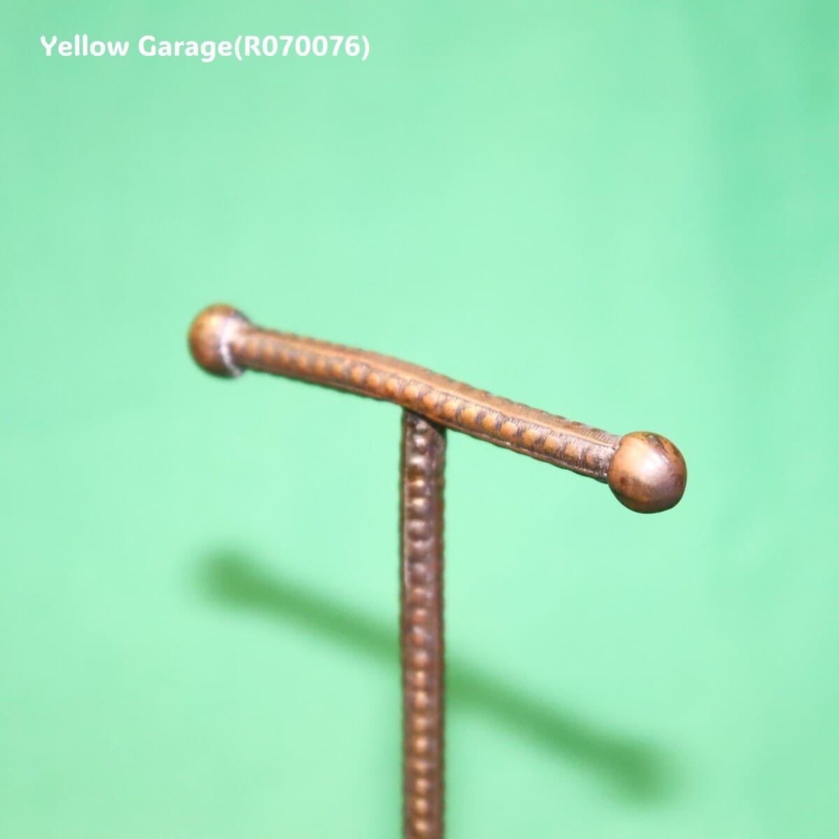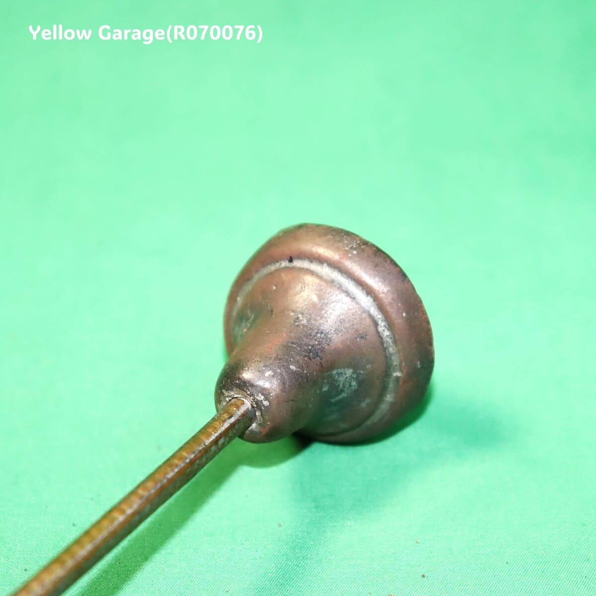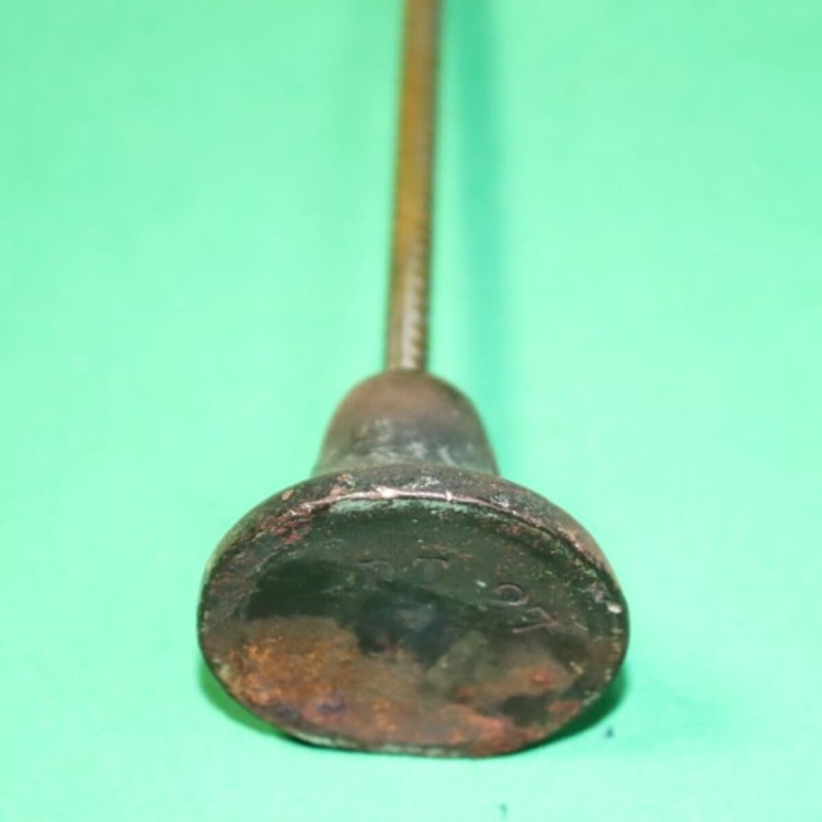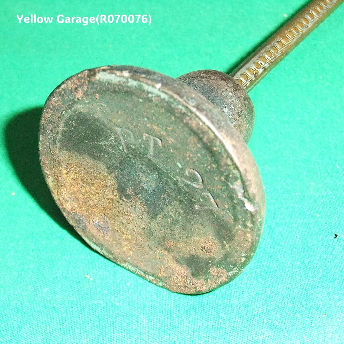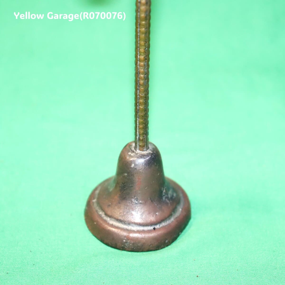 縞々(リング状・刻み模様)の入った金属部品 は、アンティークやヴィンテージの装飾品・什器にしばしば見られる意匠です。19世紀後半〜20世紀初頭のヨーロッパ装飾・・ヴィクトリアン期やアール・ヌーヴォー期には、家具や什器、金属工芸品に「繰り返しパターン」の装飾が多用されました。真鍮やブロンズ製の小物(燭台、ランプスタンド、フックなど)にも「環状の刻み模様」が施されることがあります。縞々模様は単なる装飾だけでなく、滑り止めや質感の演出としても役立ちました。特に棒状部分に刻まれることで「光の反射にリズム感」が出て、高級感を演出できます。19世紀末〜20世紀中頃まで長く愛用された意匠表現のひとつで、いわば「古典的なデザインモチーフ」で、装飾品や什器で幅広く用いられてきました。