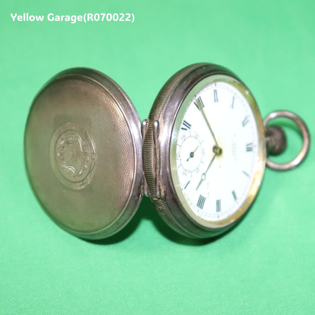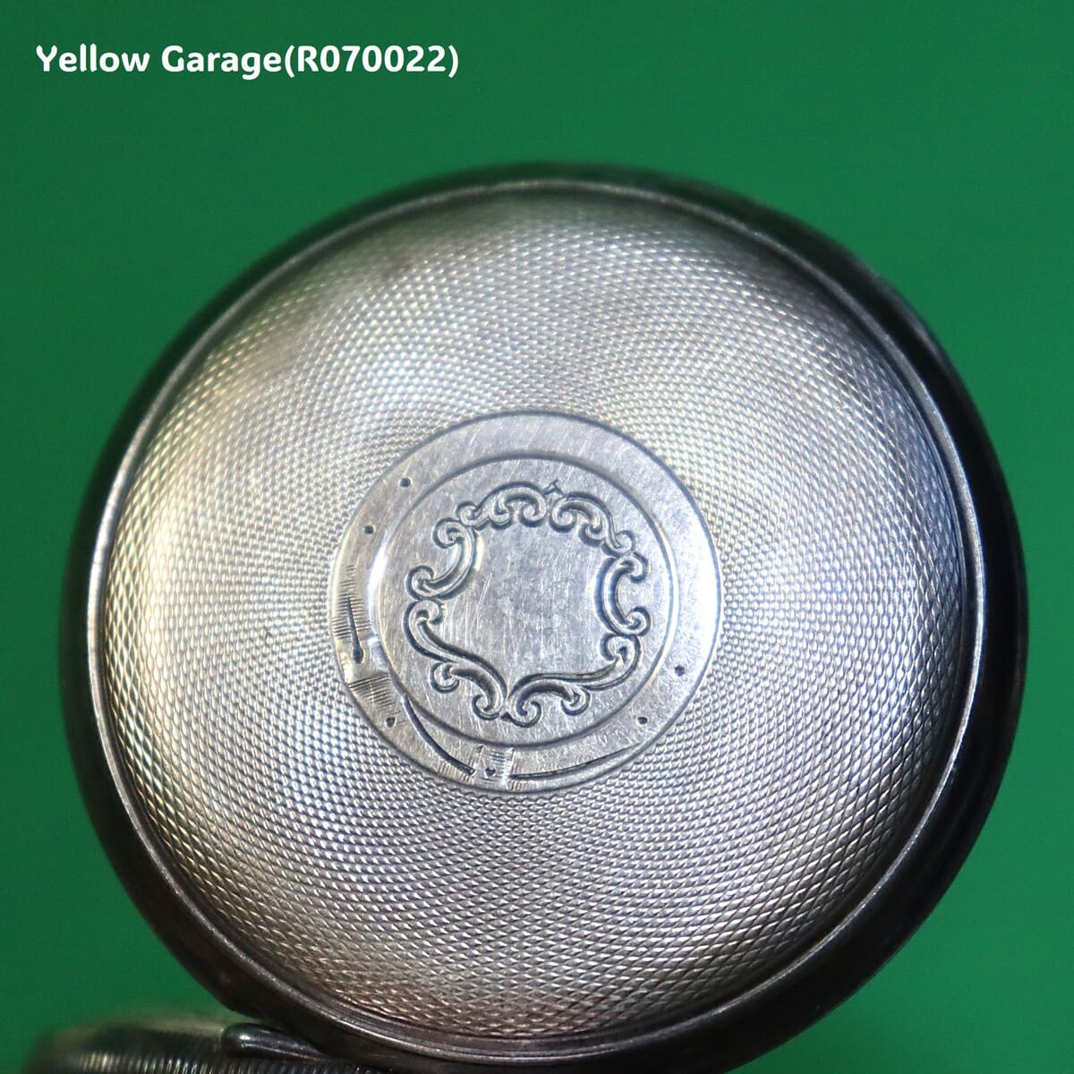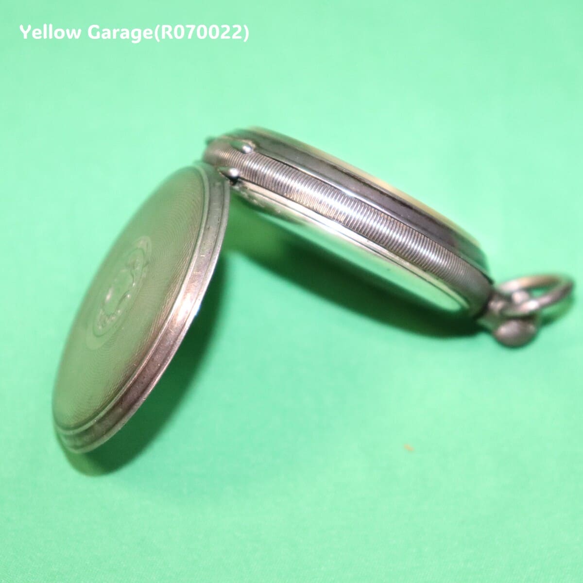 懐中時計の裏蓋刻印はイギリスのホールマークで、以下の意味があります:ライオン(Passant):スターリングシルバー(銀純度92.5%以上)を示します。錨(Anchor):イングランドのバーミンガム(Birmingham)にあるアセイオフィス(検定所)を意味します。「A.L.D」は Dennison Watch Case Company(アーロン・ルフス・デニソン設立のケースメーカー)のマークで、スイス製ムーブメントをイギリスでケースに収めて販売していたことを示します。