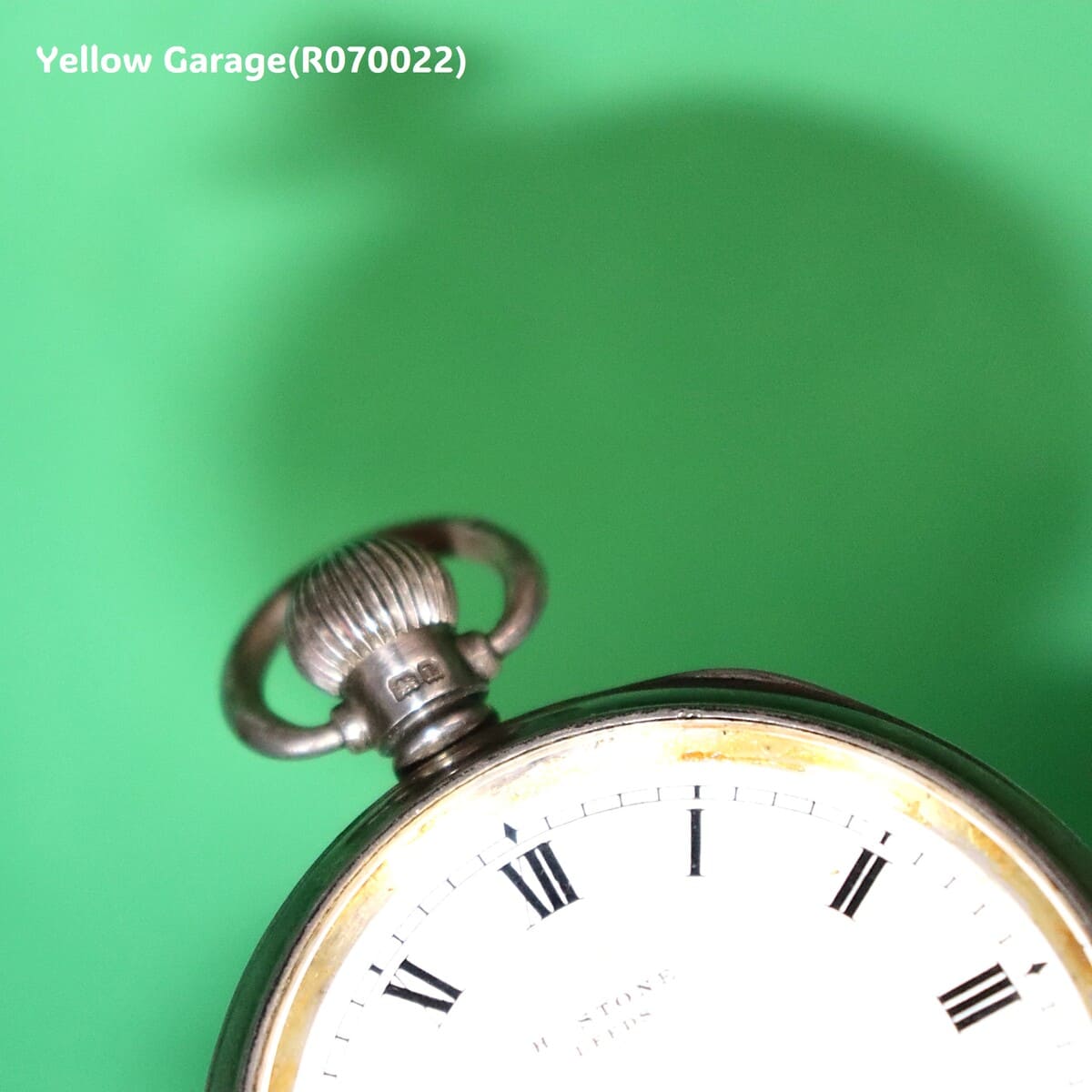 H.STONE(英国リーズの時計店) が販売したヴィンテージ懐中時計です。文字盤には「H.STONE LEEDS」と「SWISS MADE」の刻印があり、スイス製の17石ムーブメントを搭載。ケース裏には英国バーミンガムの銀製品ホールマーク「ライオン・錨・L」が確認でき、1935年製であることがわかります。ケースは A.L.D(Aaron Lufkin Dennison) 製で、重厚なスターリングシルバー製。裏面には家紋風の優雅な彫金が施され、英国らしい品格が漂います。(R070022)