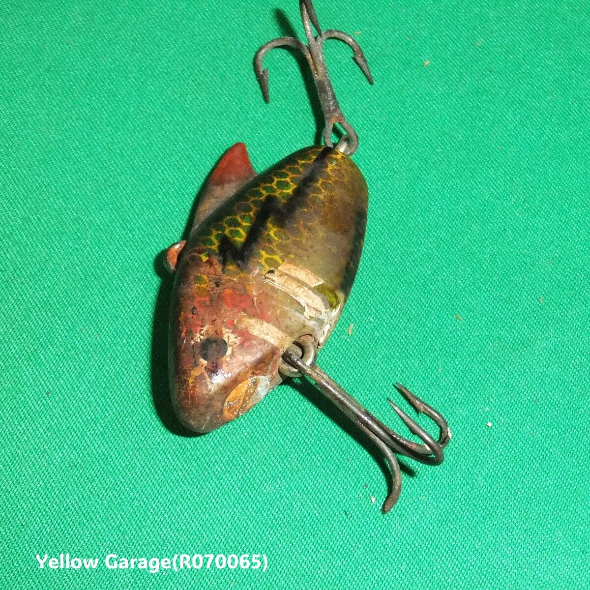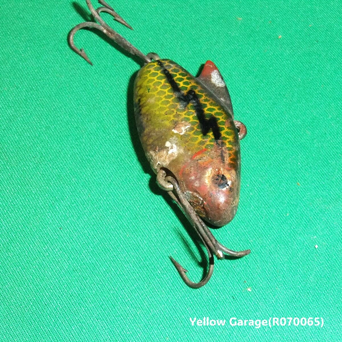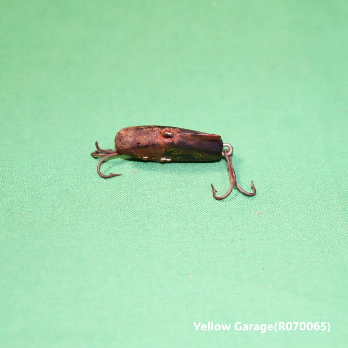 アメリカの老舗ルアーブランド「Heddon(ヘドン)」が手掛けた名作ルアー Heddon Sonic。1950年代に登場したこのルアーは、小型ながらも力強いバイブレーションを生み出すことで、多くのアングラーから支持されました。腹部に「HEDDON SONIC」の刻印が残り、鱗模様や稲妻のような黒い模様も当時の彩色を伝えています。全体に経年劣化が見られますが、それもまたアンティークの味わいです。コレクションやインテリアにおすすめの一品です。(R070065)