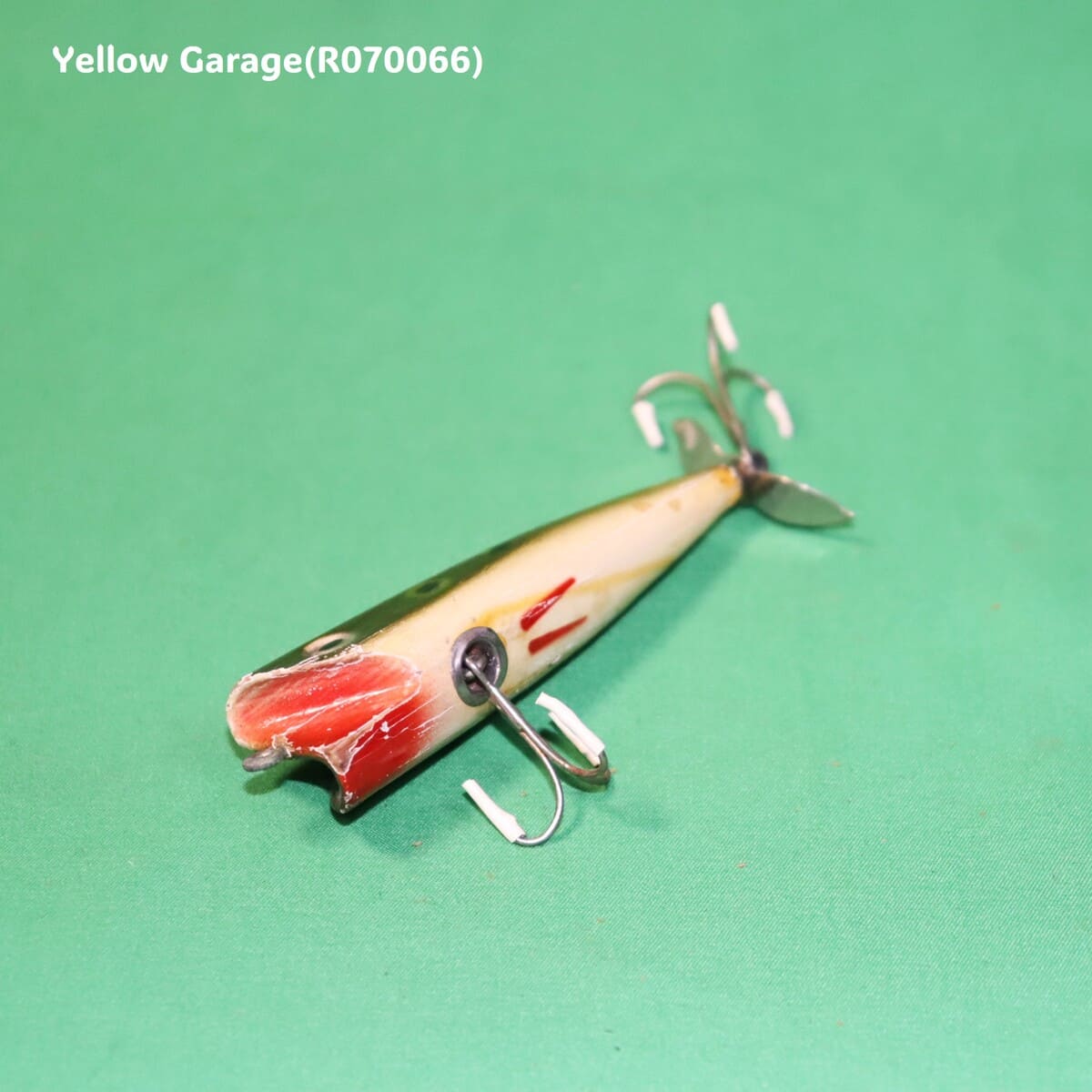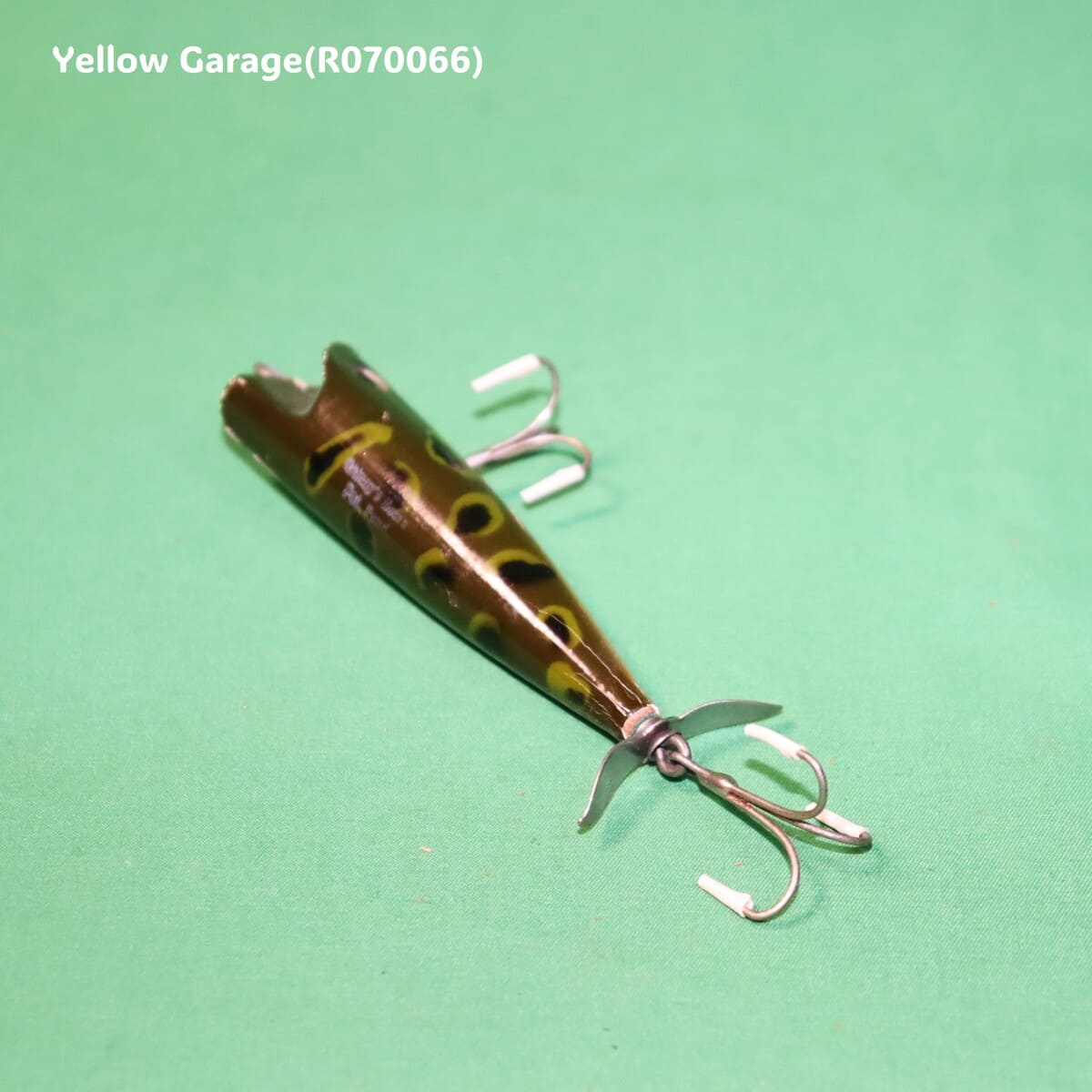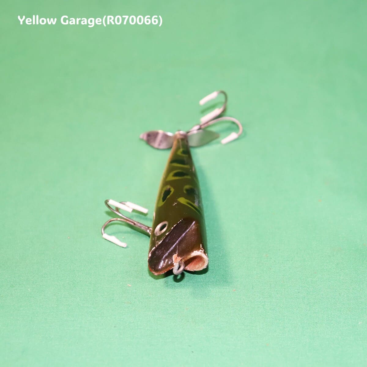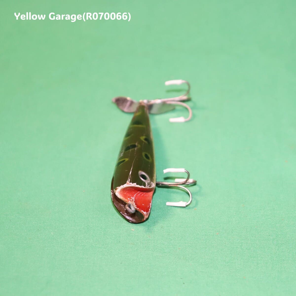 アメリカの老舗ルアーメーカー Heddon(ヘドン) が生み出した「Zara Spook(ザラスプーク)」は、トップウォーターフィッシングの代名詞ともいえる逸品です。独特のボディ形状により生まれる“ドッグウォークアクション”は、世界中のバスフィッシャーを魅了してきました。本品は、腹部ホワイト、側面に大きな斑点模様を持つクラシカルなカラーリングに加え、尾部には2枚羽のスクリューを装備した希少なタイプ。実釣用としてはもちろん、アンティークコレクションとしても価値の高い一品です。経年による塗装剥がれや使用感がありますが、それがまた歴史を物語る味わいとなっています。(R070066)