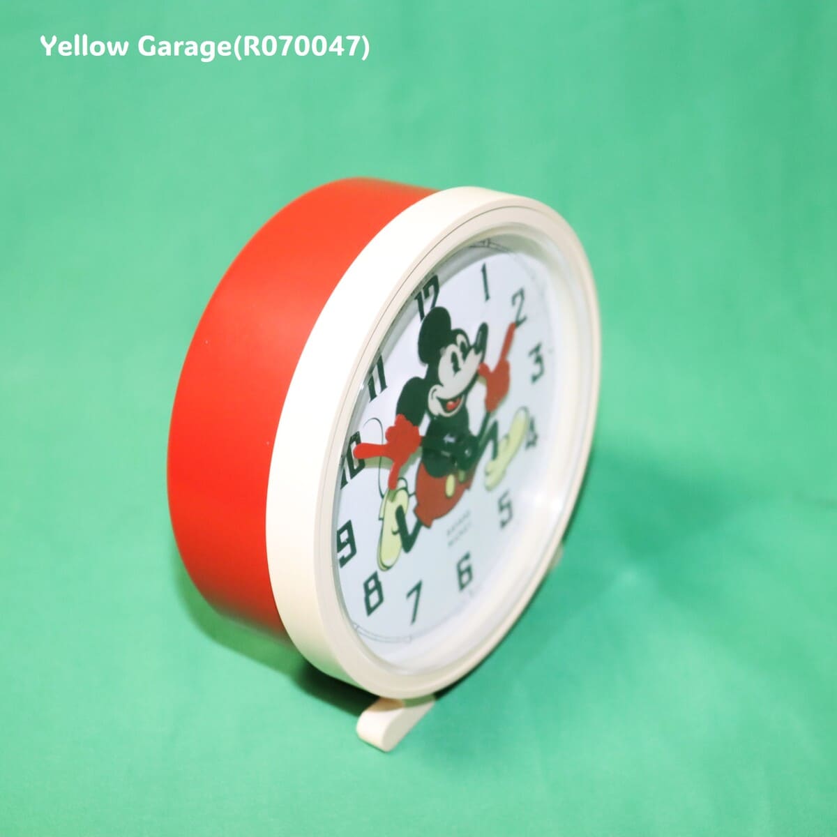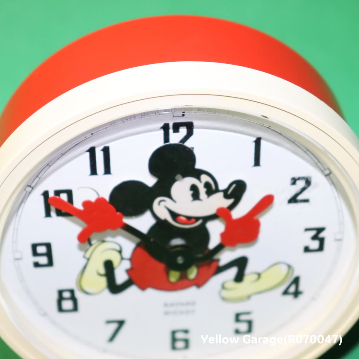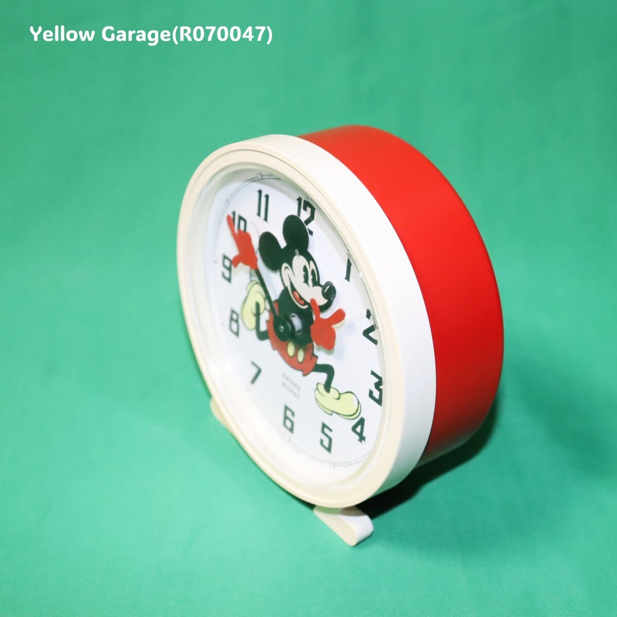 1977年にフランスの老舗時計メーカー「Bayard(バヤール)」が製造した、Walt Disney Productions 正規ライセンス品のミッキー目覚まし時計です。当時の子ども部屋やリビングを飾ったレトロポップなデザインが魅力で、ミッキーの両腕が時針と分針になっているユニークな仕掛けが特徴。ミッキーの楽しげな表情と、明るい赤いボディが、どこか懐かしさを感じさせてくれます。背面の金属製ゼンマイを巻くことで動作する機械式アラーム時計で、チクタクという音とともに、時を刻むその音自体がレトロな雰囲気を演出します。動作確認済みで、アラーム機能も問題なく作動します。(R070047)