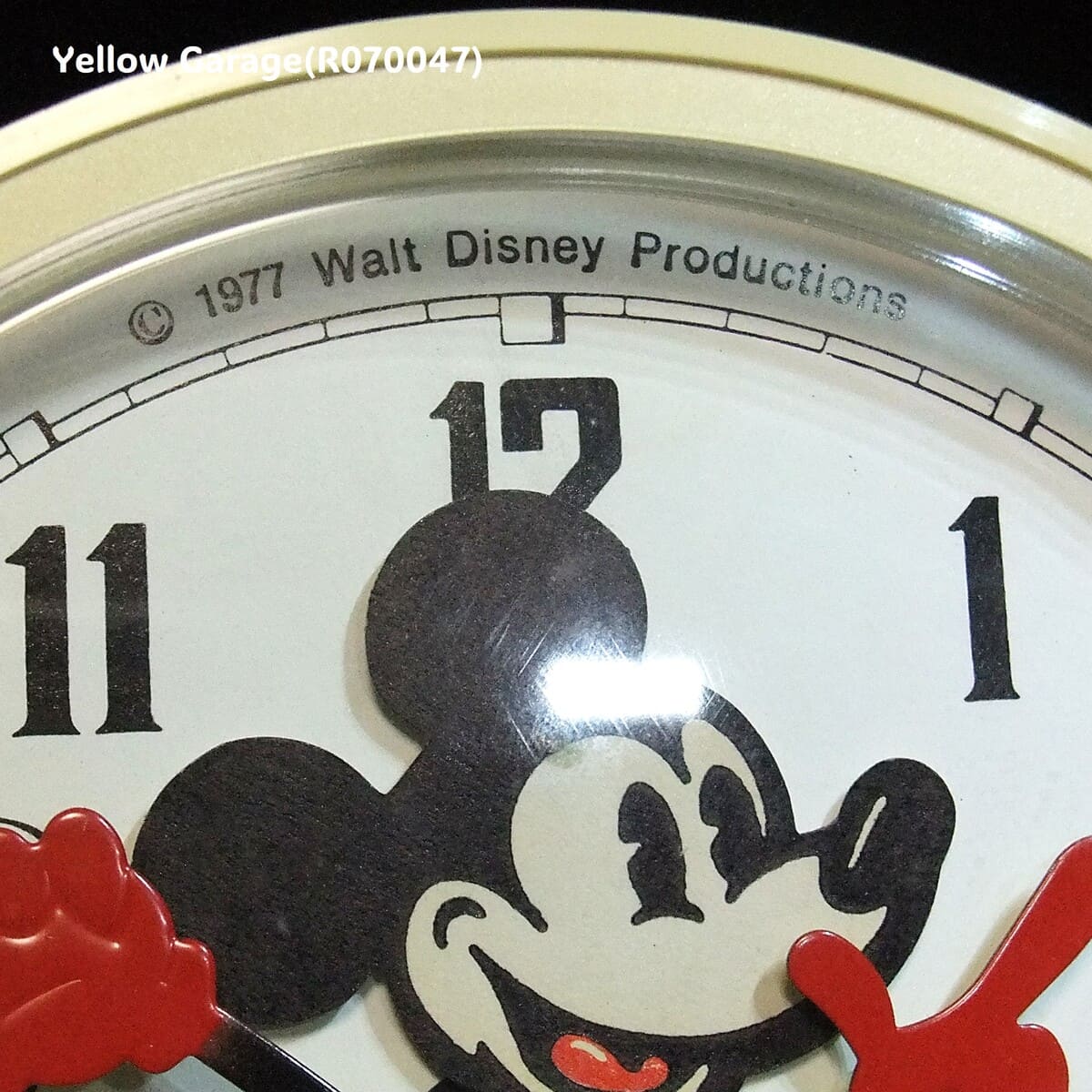 ミッキーマウスといえば、「赤いパンツ」がトレードマーク。ディズニーの多くのキャラクターやロゴは、赤・黒・白・黄色といった原色を中心に構成されており、子どもにも強く印象づけやすい色です。赤は視認性が高く、特に子ども向けアイテムでは「楽しさ・元気・親しみやすさ」を表現するために多く使われます。この時計が作られた1977年当時は、インテリアや雑貨でも原色系のポップな色合いが流行していました。赤は特に「未来感・革新性・ポップカルチャーの象徴」として使われることが多く、時計や家電にもよく見られるカラーでした。Bayard社が製造したディズニーライセンス製品の中には、青や黄色のバリエーションもありますが、赤は特にミッキーの「王道カラー」として特別な位置づけです。