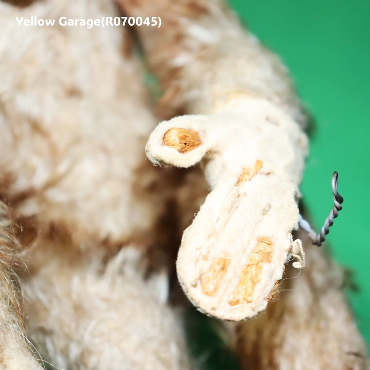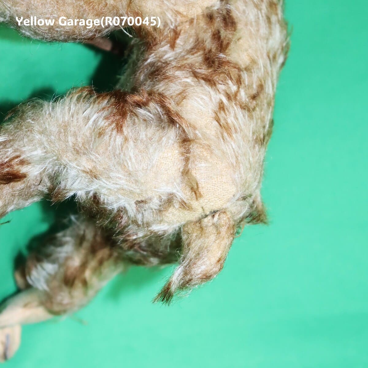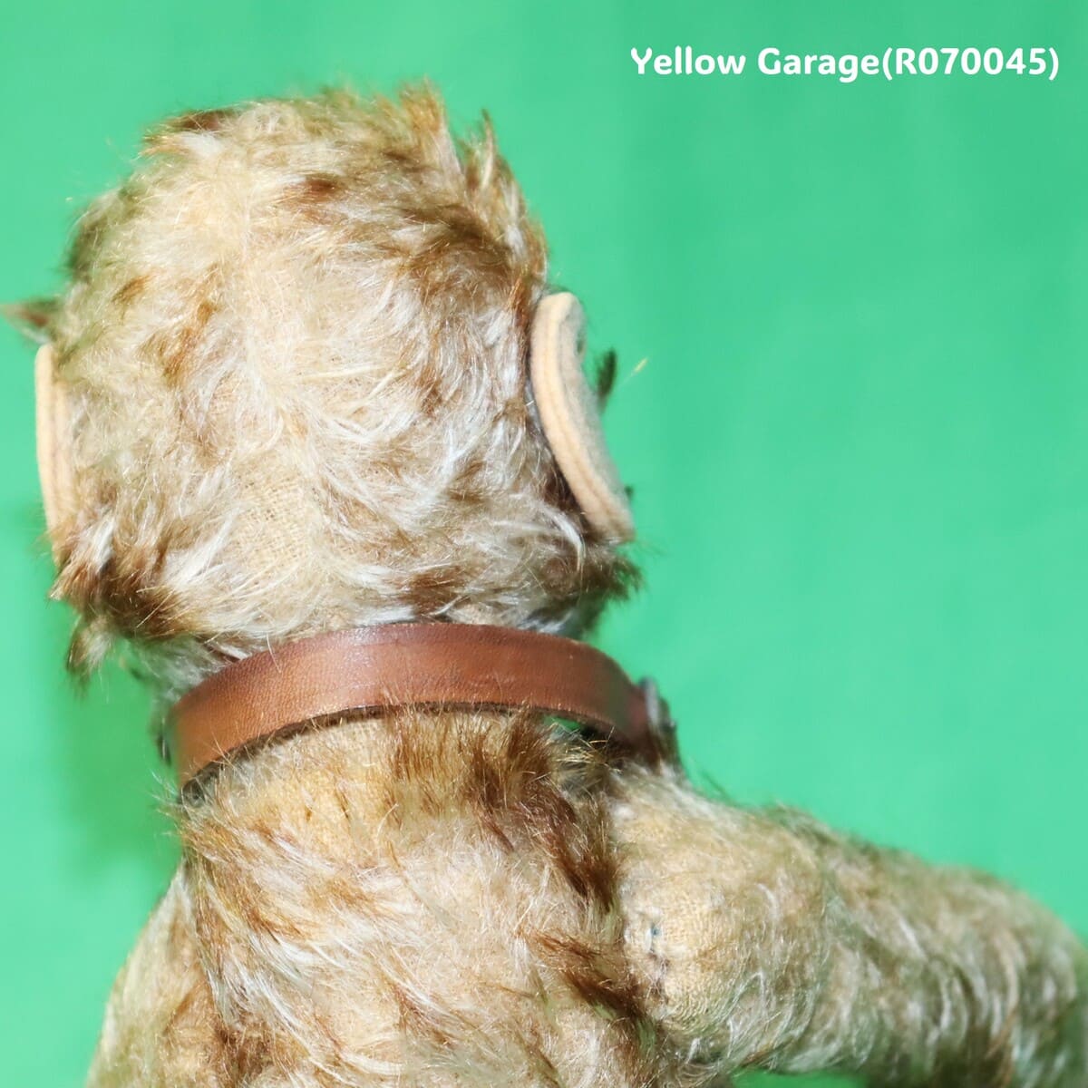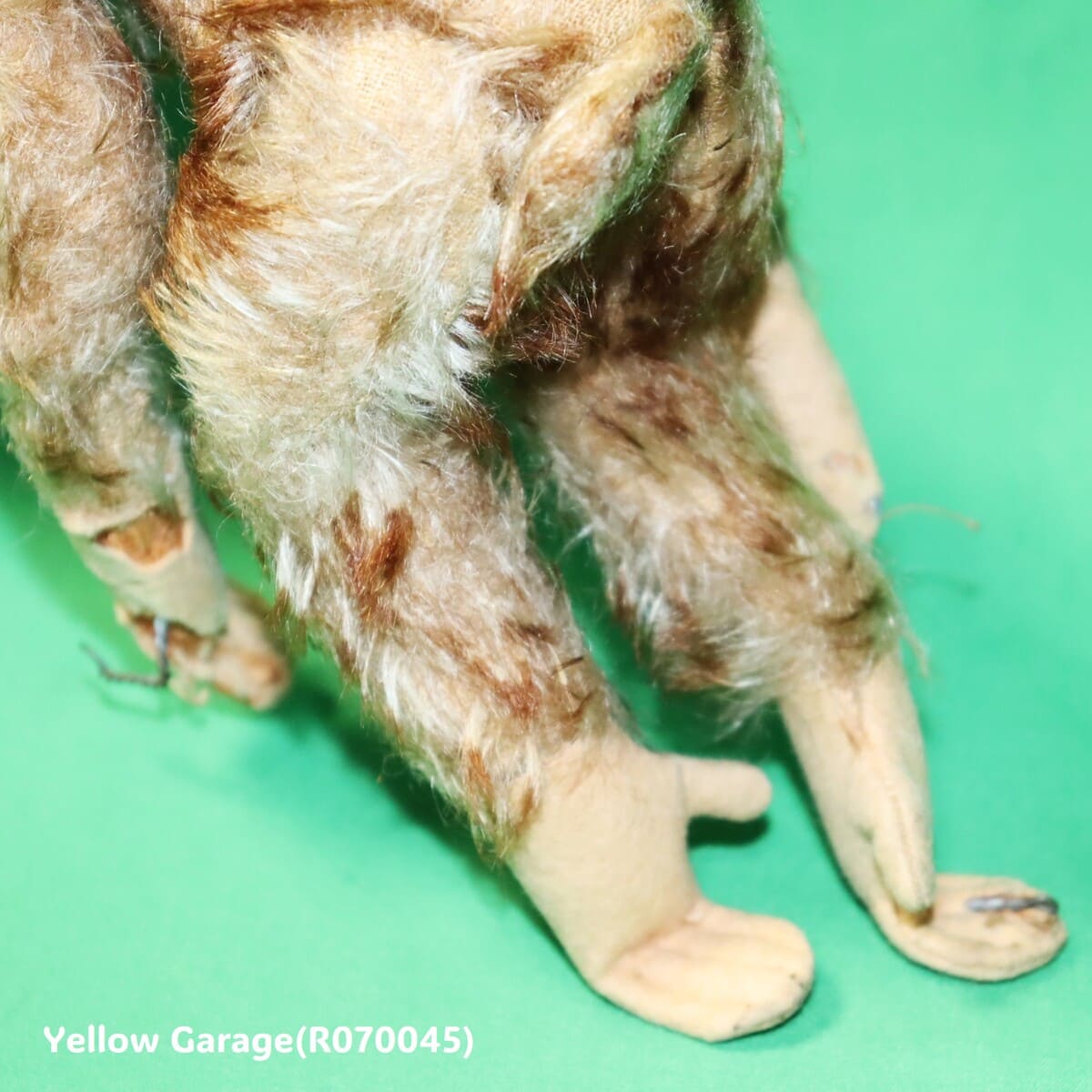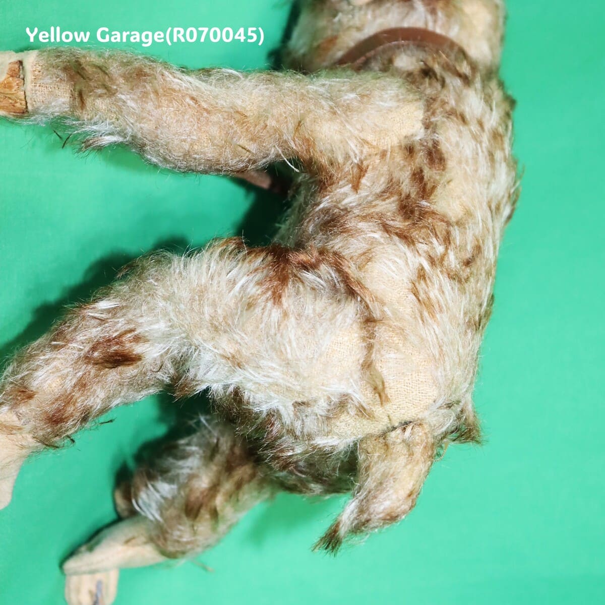 時代を感じさせる、愛嬌たっぷりのアンティークのモンキーです。柔らかい毛並みと布製の手足、そしてどこか憂いを含んだガラスの瞳が特徴のこのおサルさん。首には本革のベルトが巻かれ、昔どこかで誰かに大切にされていた雰囲気が漂っています。尾をひねると首を左右に振って”NO!”を示します。破れや汚れ、摩耗といった経年によるダメージが多々見られますが、それこそがアンティーク品ならではの「味」。この子が歩んできた時間をそのまま受け継いでくれる方にお届けしたい一点です。(R070045)