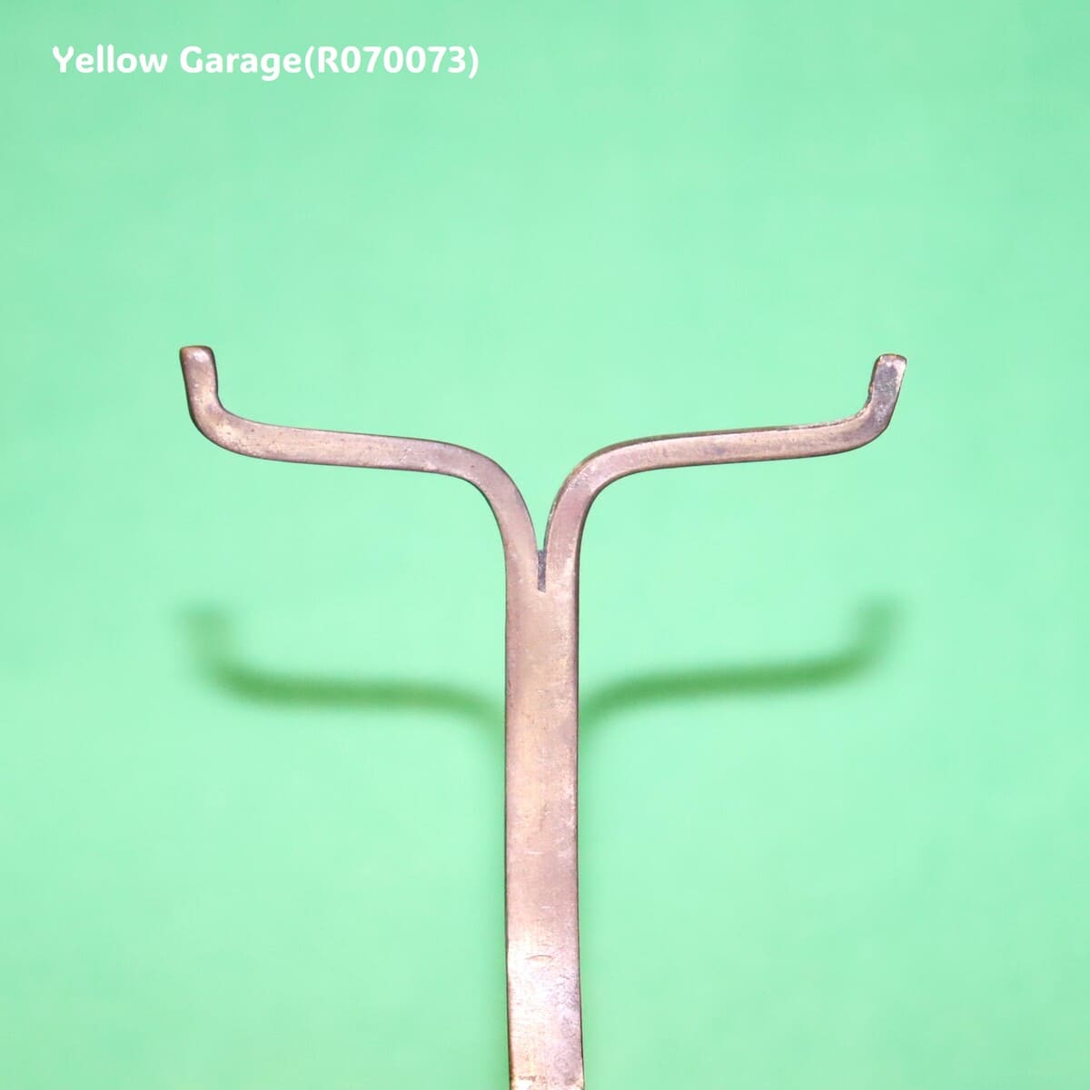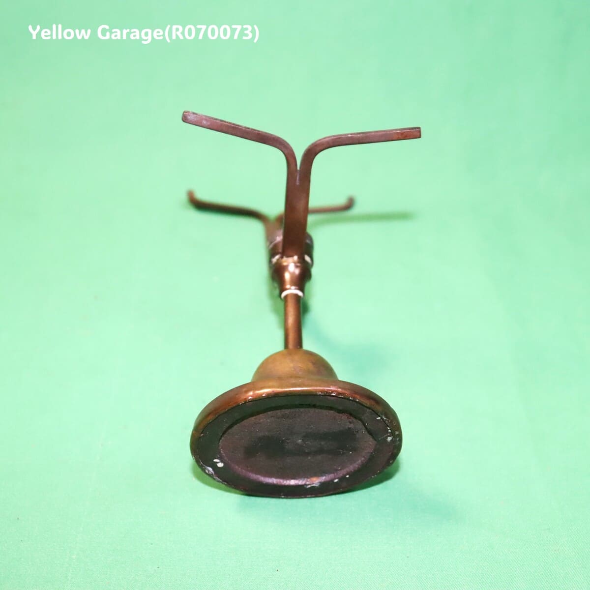 20世紀初頭に使用されていたと推定される真鍮製のアンティーク靴スタンドです。特に婦人用のヒールシューズやブーツに対応するため、つま先を支えるアームが高く持ち上げられた「ハイアングル」仕様になっています。ネジにより高さ調整が可能で、靴を美しく、かつ安定してディスプレイすることができます。実店舗の什器としてだけでなく、インテリアとしても存在感を放つアンティークです。(R070073)