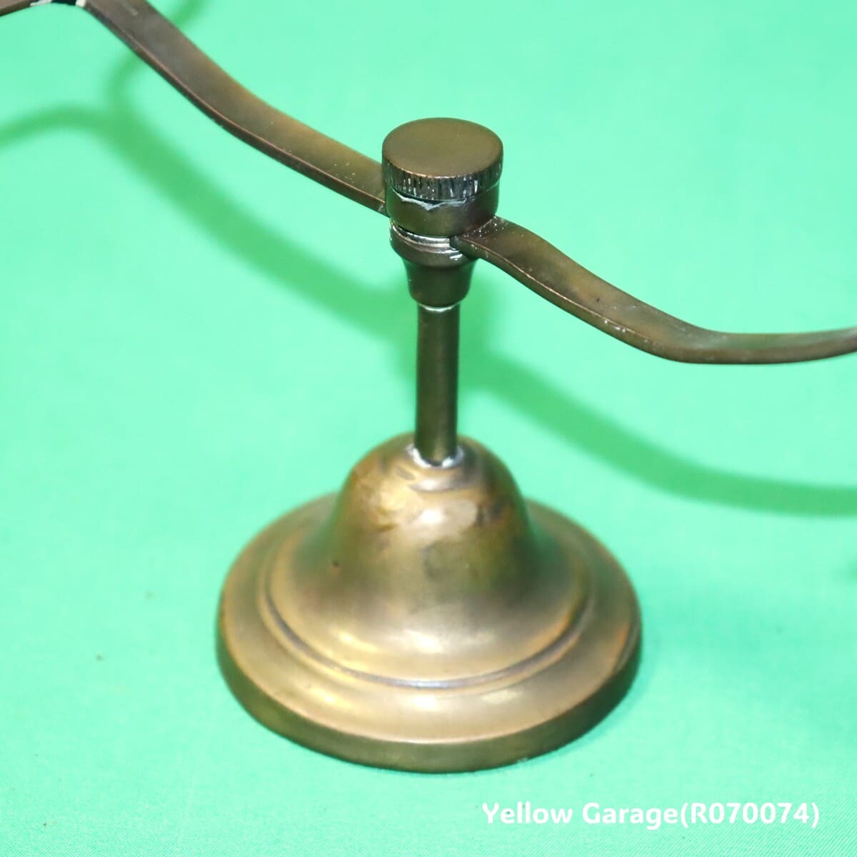 20世紀初頭に使用されていたと推定される、真鍮製のアンティーク靴スタンドです。靴のつま先とヒール部分をそれぞれ金具に乗せる仕組みで、ネジを緩めることで高さの調整が可能です。角度はやや水平に近く設計されており、落ち着いた安定感を持たせる形状になっています。真鍮特有の経年変化による風合いがあり、アンティークらしい趣を十分にお楽しみいただけます。店舗什器やコレクションのディスプレイ、小物撮影用にもおすすめの一点です。(R070074)