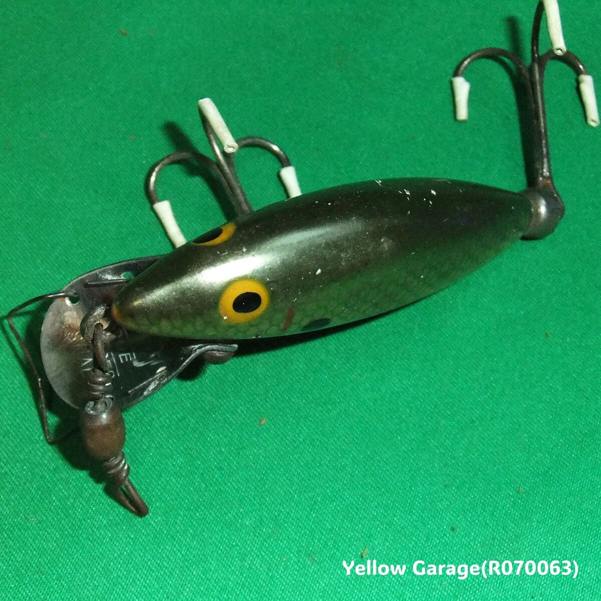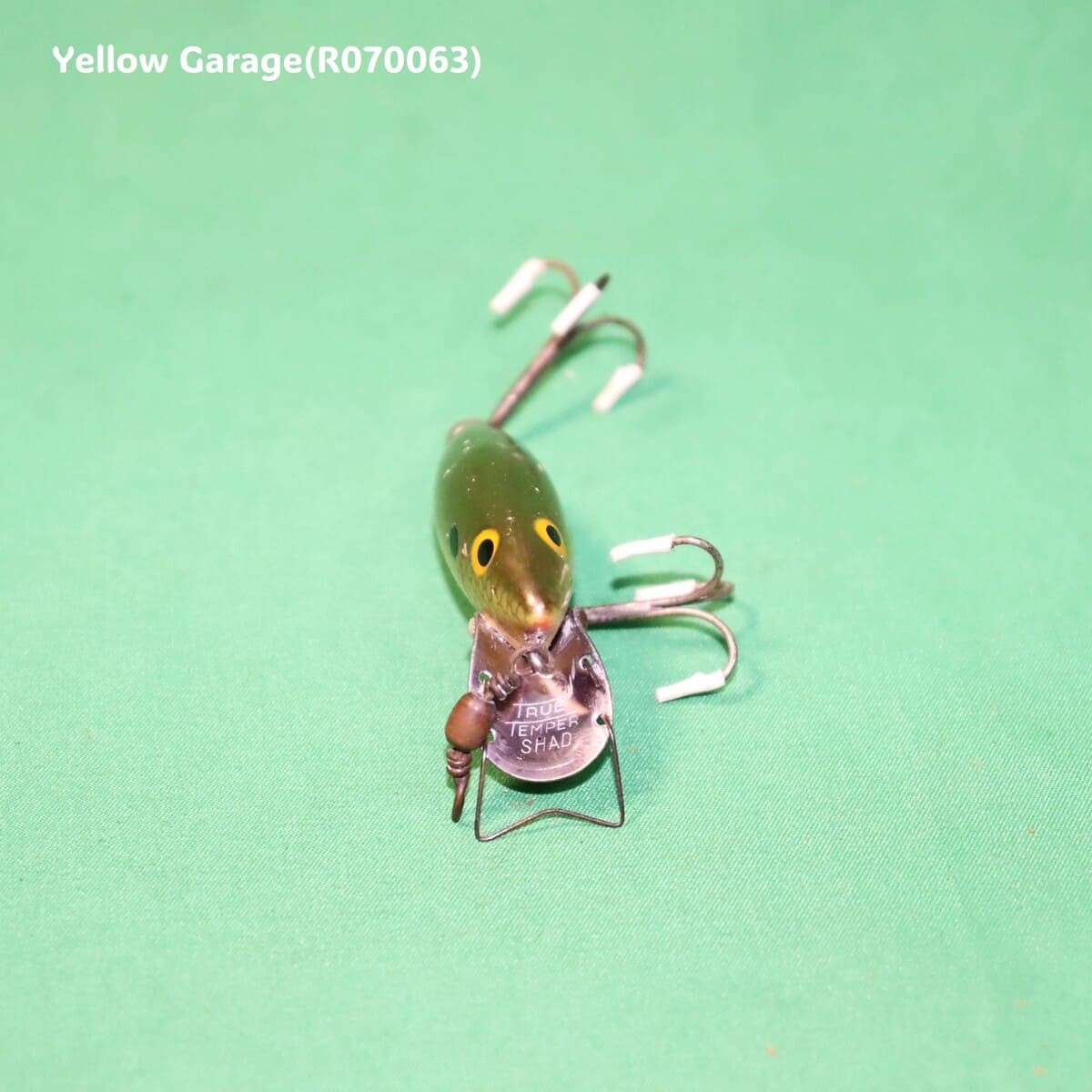 アメリカの老舗メーカー「TRUE TEMPER」によって製造されたビンテージルアー「SHAD」モデルです。細かい鱗模様と深みのあるオリーブゴールドのボディ、黄色いアイ、両サイドの黒点が特徴的。金属製のリップには「TRUE TEMPER SHAD」の刻印があり、当時のクラフトマンシップを感じさせます。コレクションやディスプレイに最適な一品で、時代を超えて釣り人の心を魅了する存在です。(R070063)