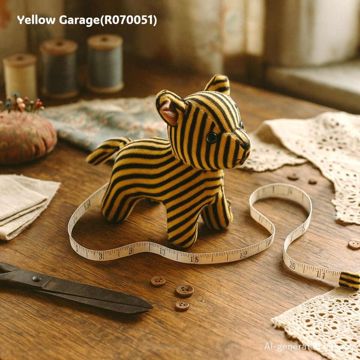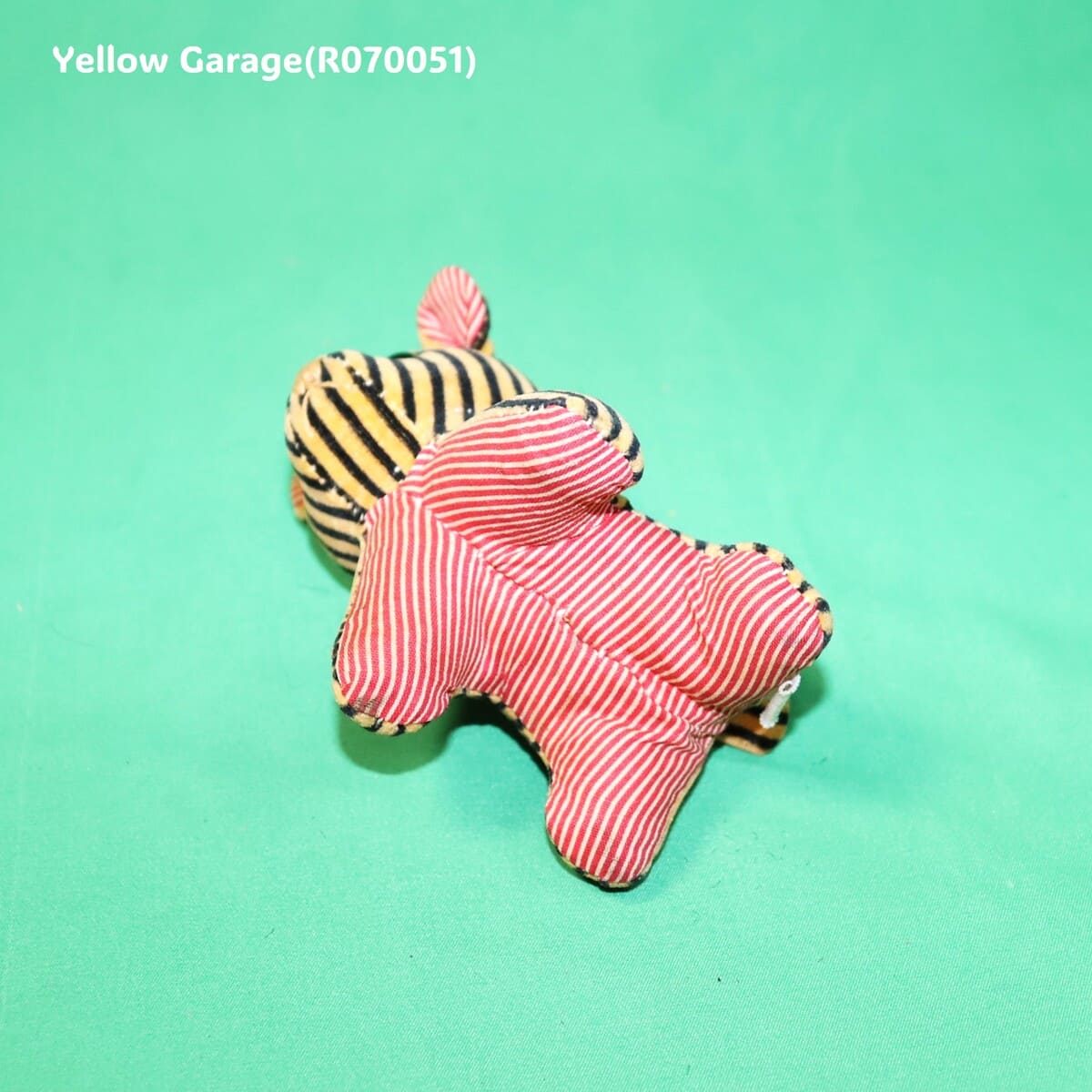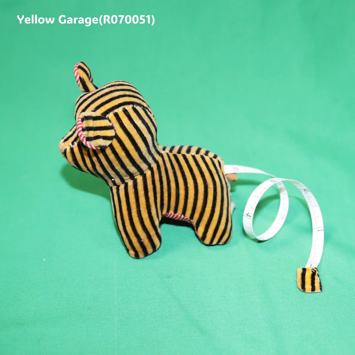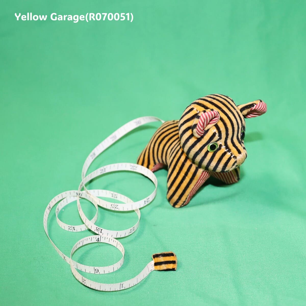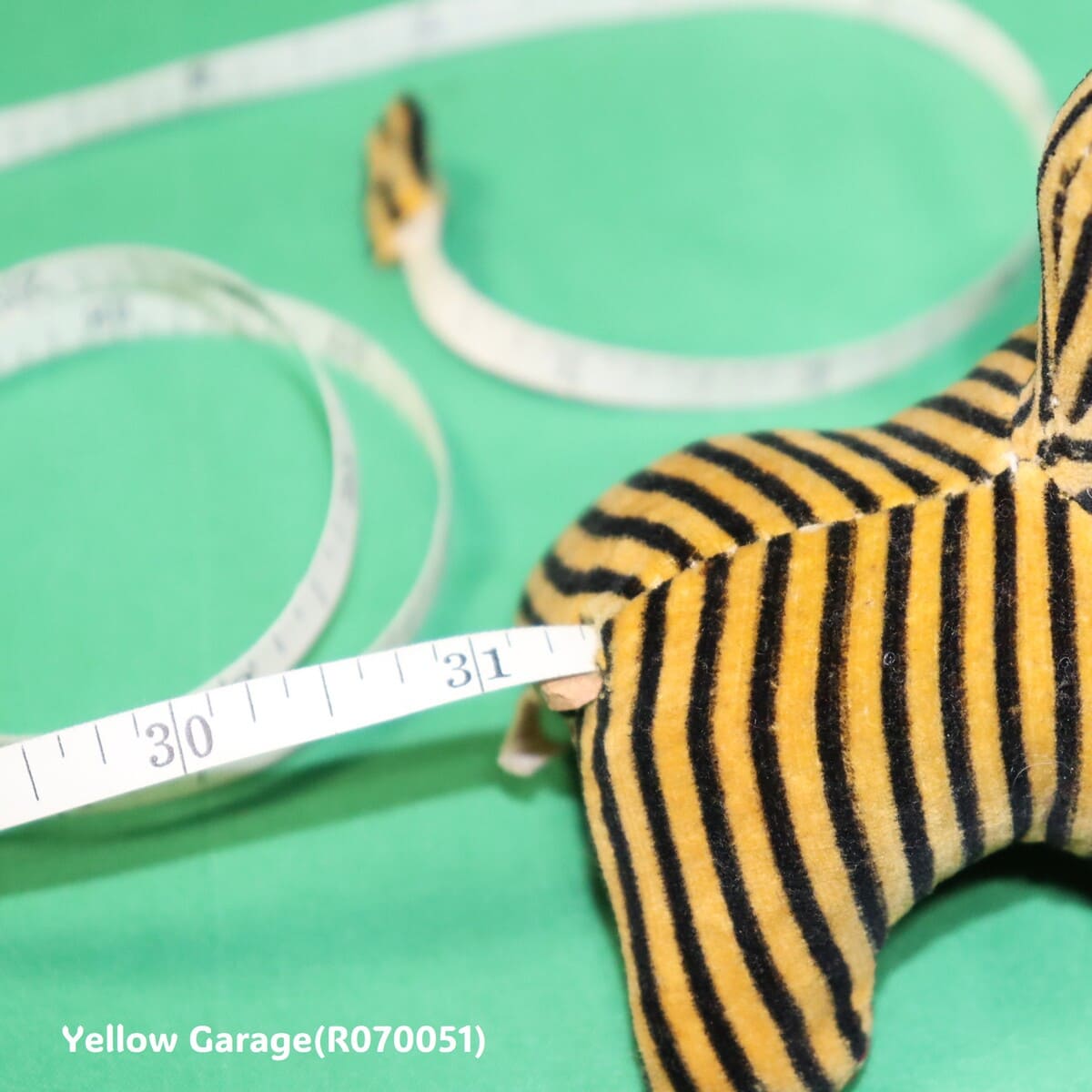 ヨーロッパ製と思われるメジャー付きぬいぐるみで、主に裁縫用として使用されていたアンティーク品です。しっぽを引っ張ると巻き尺(インチ表記)が現れ、最大36インチ(約91cm)まで計測可能。メジャーは内部にスプリング巻き取り機構があります。タグには「FOREIGN」、メジャーには「CTロゴ」の印字あり。これは戦前~戦後すぐの輸出用雑貨などに見られる表示で、ヨーロッパのクラフト製品であることが推察されます。(R070051)